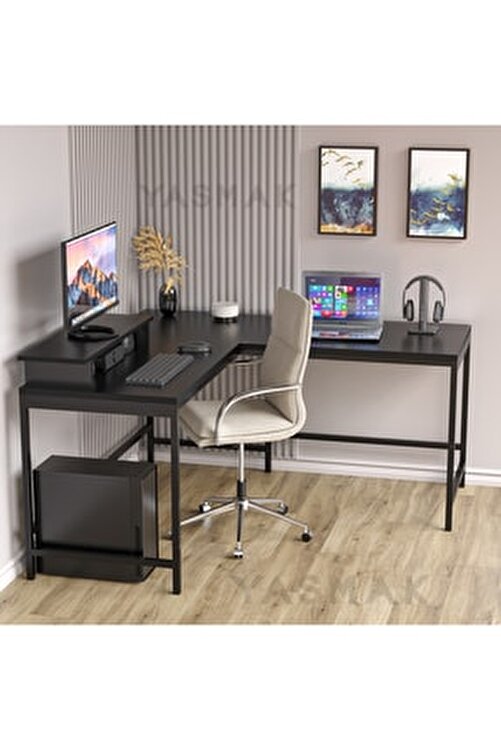 L table, Gaming Desk, L type Work Desk L-Type Computer Desk, Monitor Stand Riser, Both sides of this double corner computer desk are the same length. it offers ample space to place monitor, printer, laptop or other important accessories.