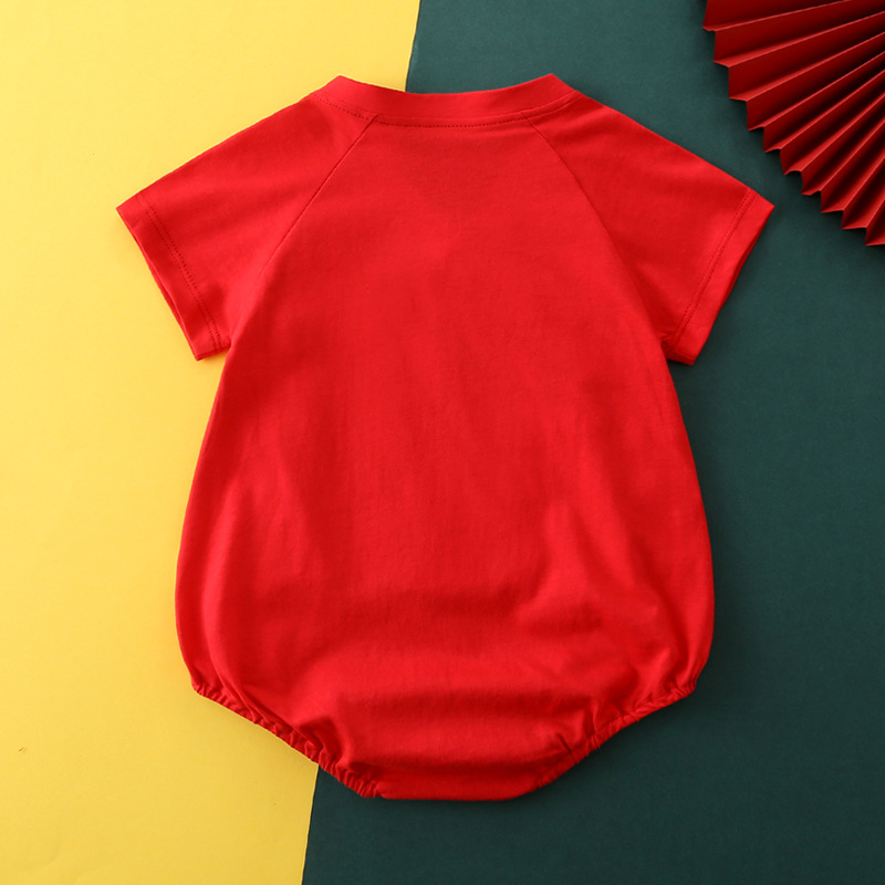 Year of the Dragon New Baby Short-sleeved Hatshirt Climbing Suit Bag Fart Suit Summer Slim Baby Catching Week Suit National Style 5386