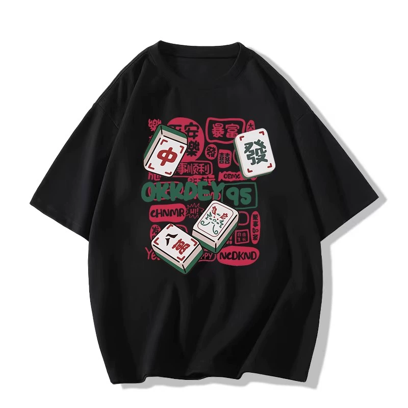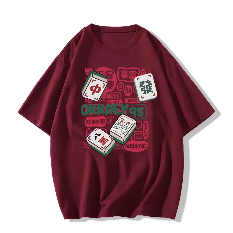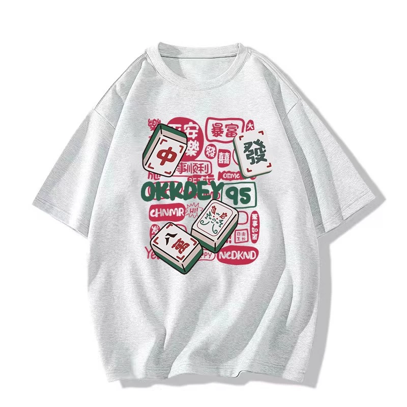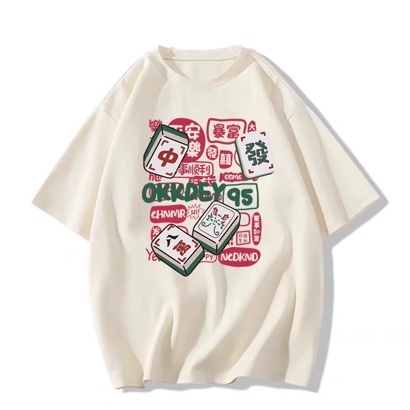 | nameOriginal | Year of the Dragon pure cotton short-sleeved T-shirt for women 2024 spring and summer new creative mahjong text printed clothes |