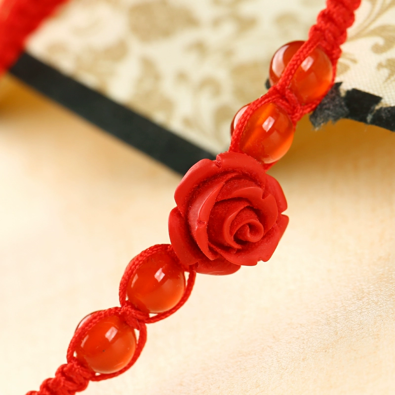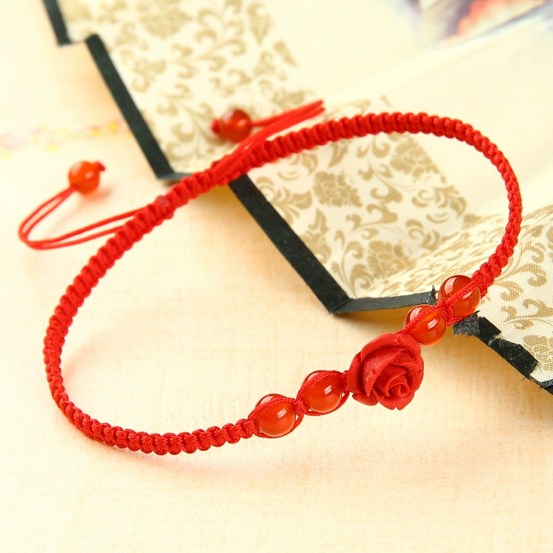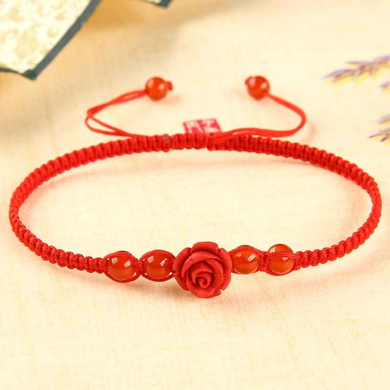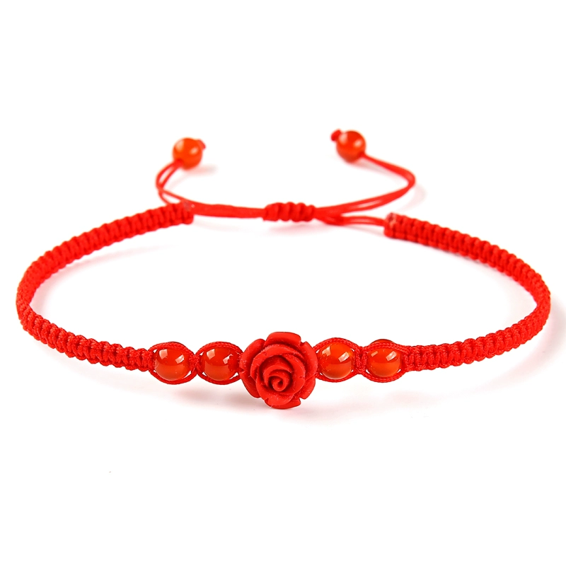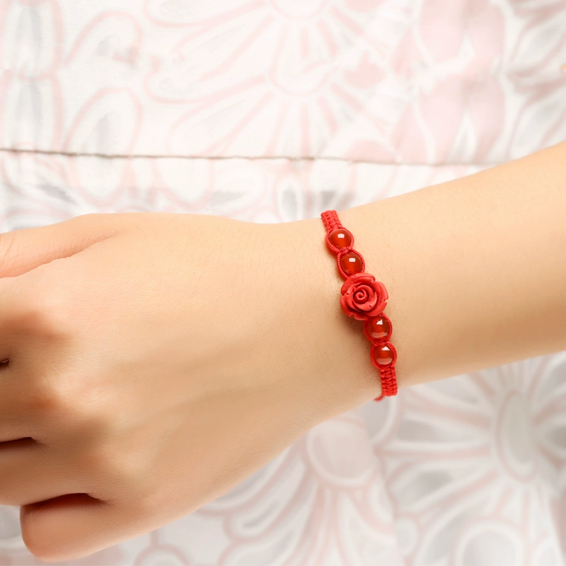 Year of the Zodiac Flat Knot Red Rope Bracelet Lacquer Carved Flower Agate Bead Bracelet Men and Women Couple Jewelry Hand Accessories Gift