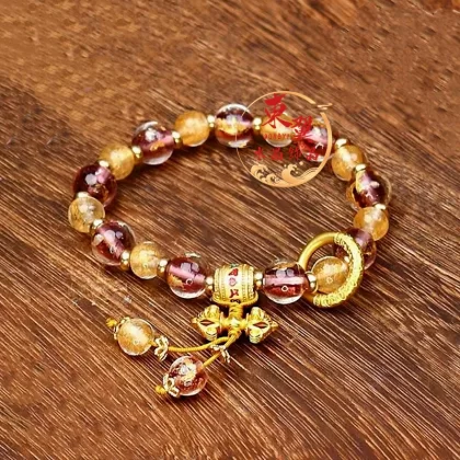 | nameOriginal | Yellow and purple gold foil six-character mantra bucket beads running ring Vajra transfer bead bracelet incense gray porcelain glass temple bracelet |