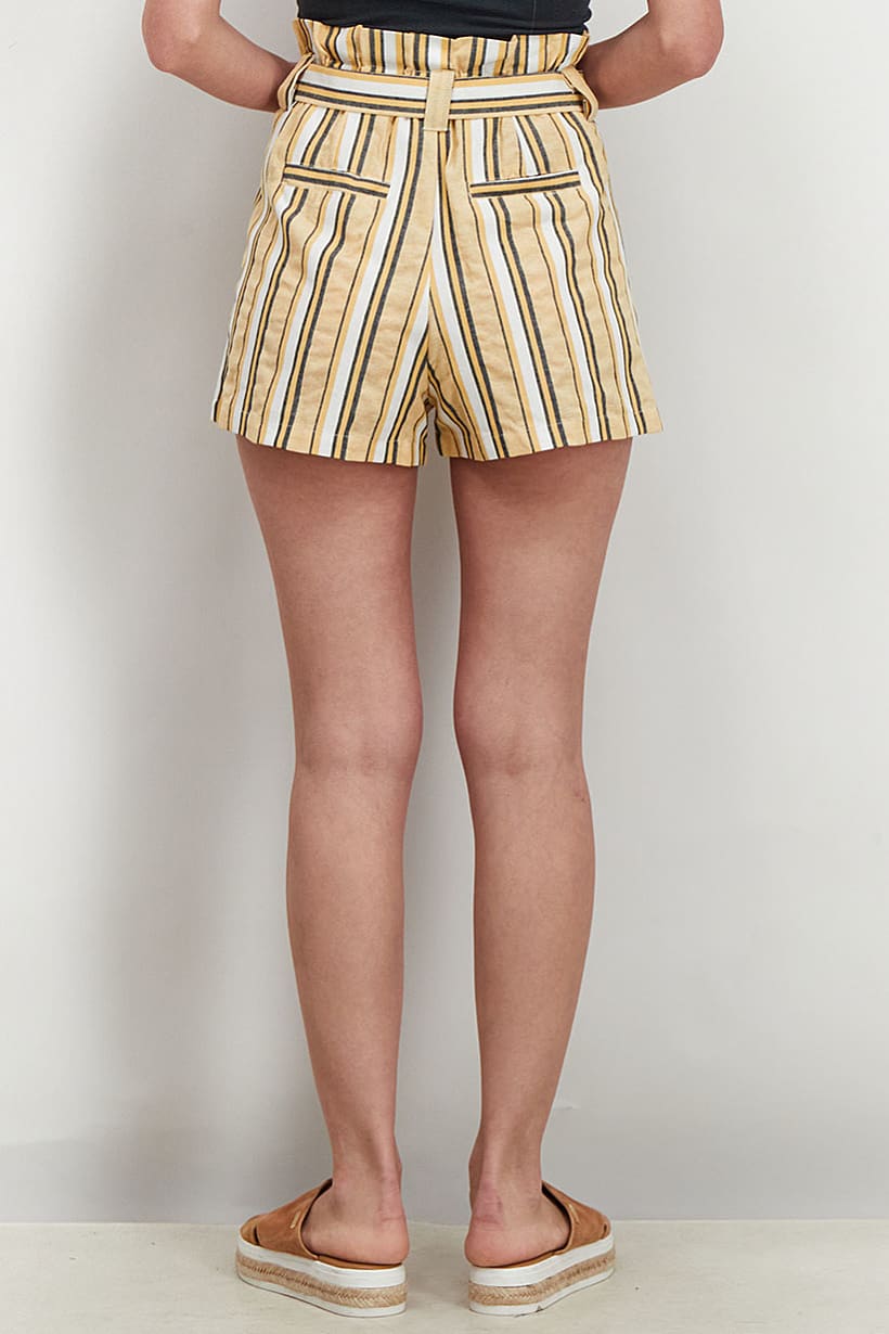 | nameOriginal | Women Stripe Belted Shorts, Yellow and White Combo |