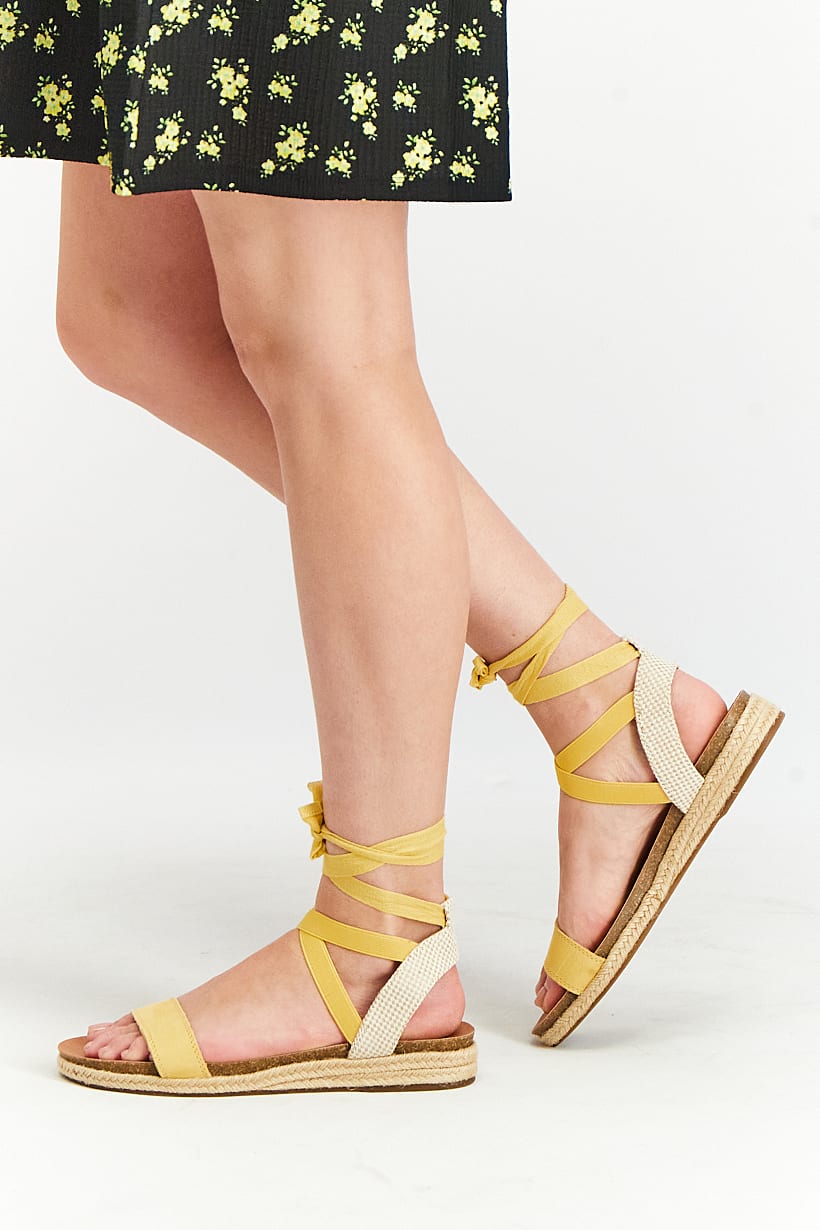 | nameOriginal | Women Tie Closure Strappy Sandals, Yellow/Beige |