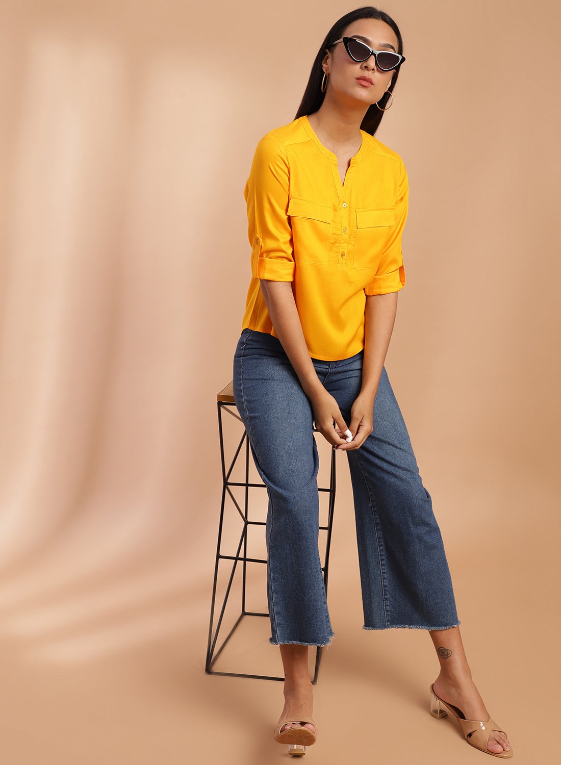 | nameOriginal | V-Neck Casual Top Curry Yellow |