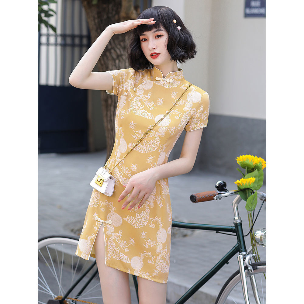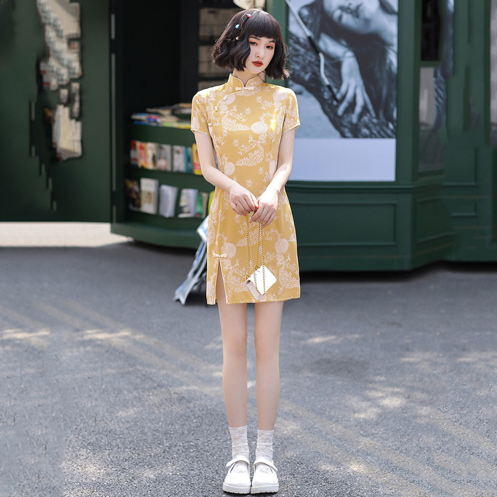 Yellow Cheongsam 2022 New Summer Young Girl Improved National Trendy Little Dress Daily Short