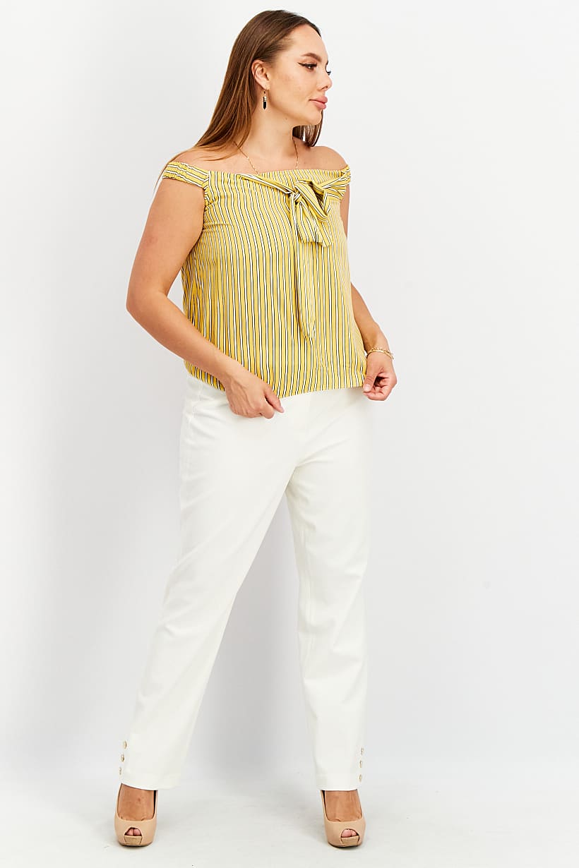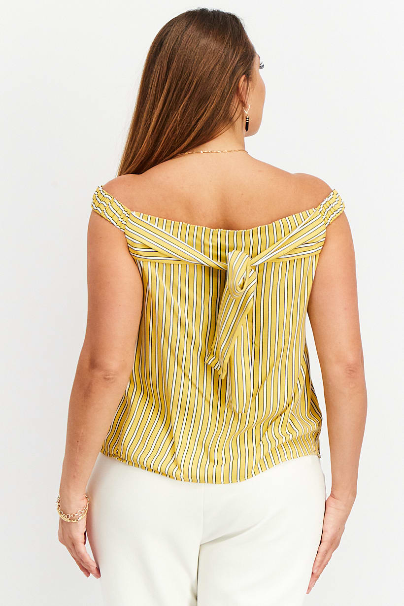 Yellow Combo Off-Shoulder Sleeveless Stripe Top for Women.