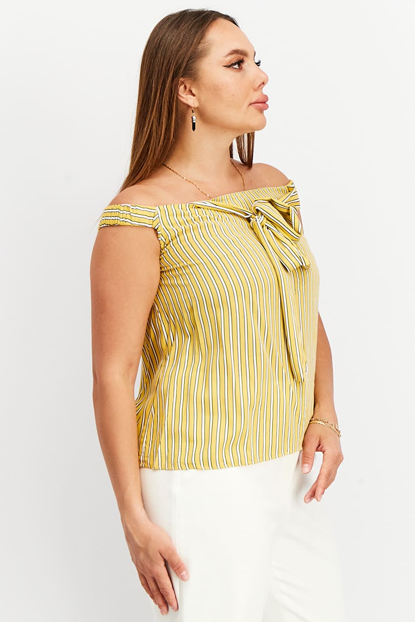 Women Clothing, Tops & Tees, women off shoulder sleeveless stripe top yellow combo