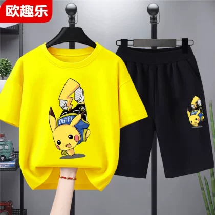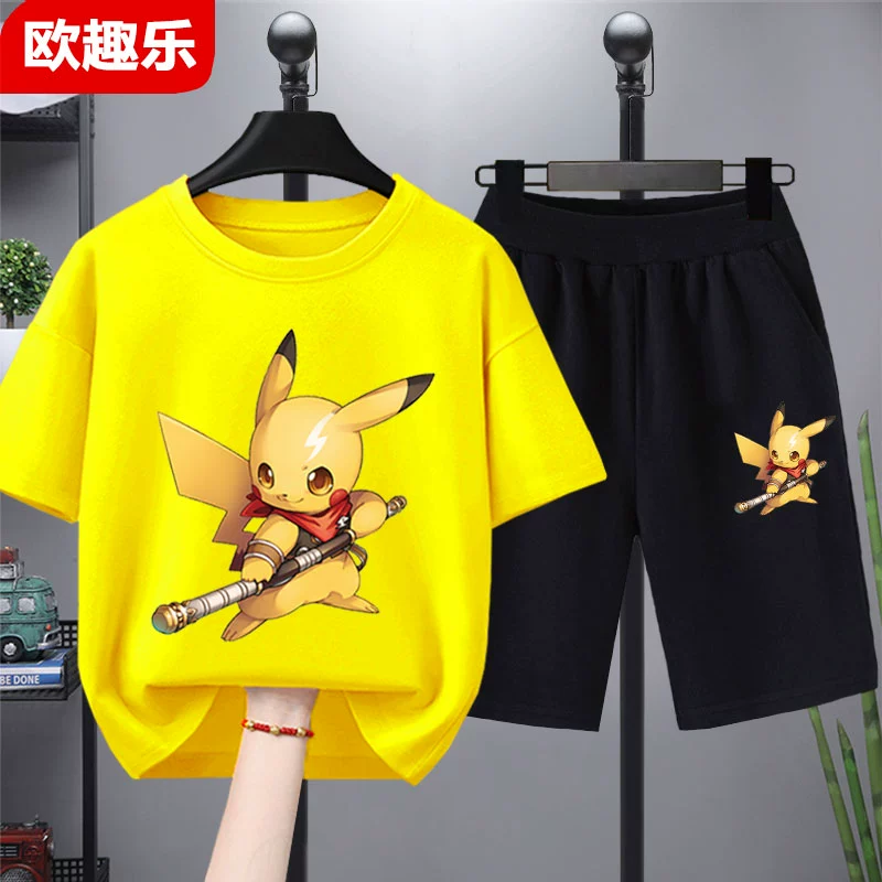 nameOriginal | Yellow cotton tops for boys, medium and large children's shorts, summer clothes |