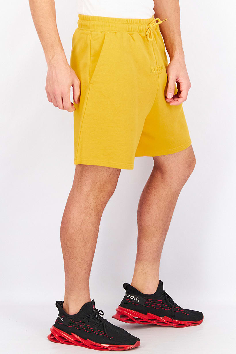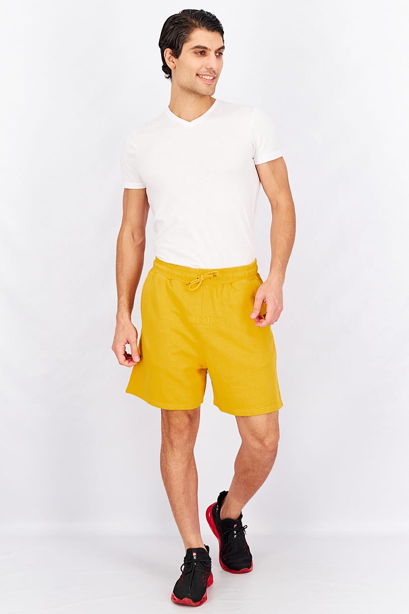 Yellow Drawstring Shorts with Embroidered Logo for Men’s Sportswear.