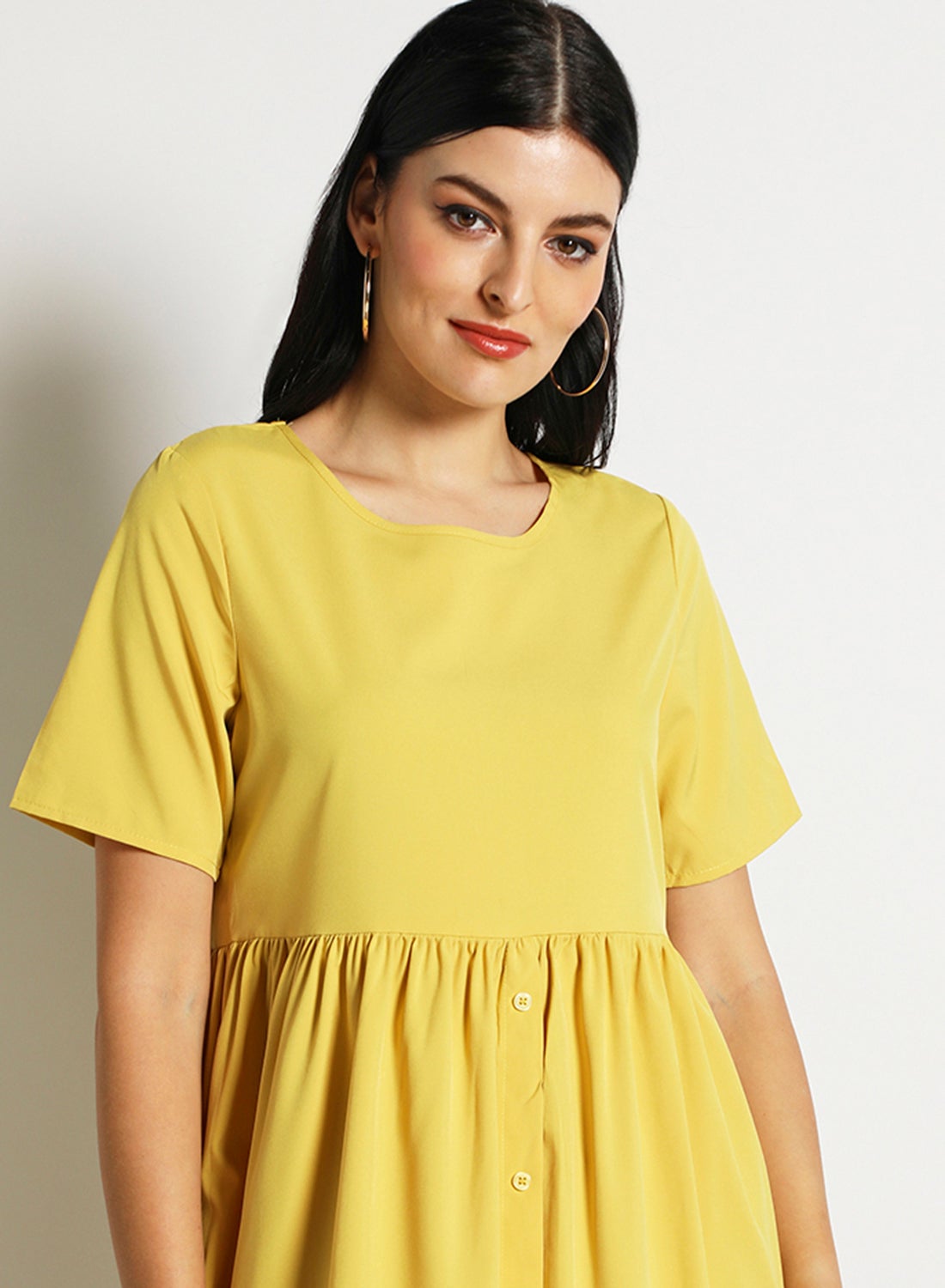 | nameOriginal | Tiered Hem Button Detailed Dress Yellow |