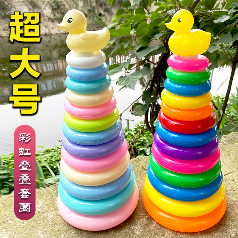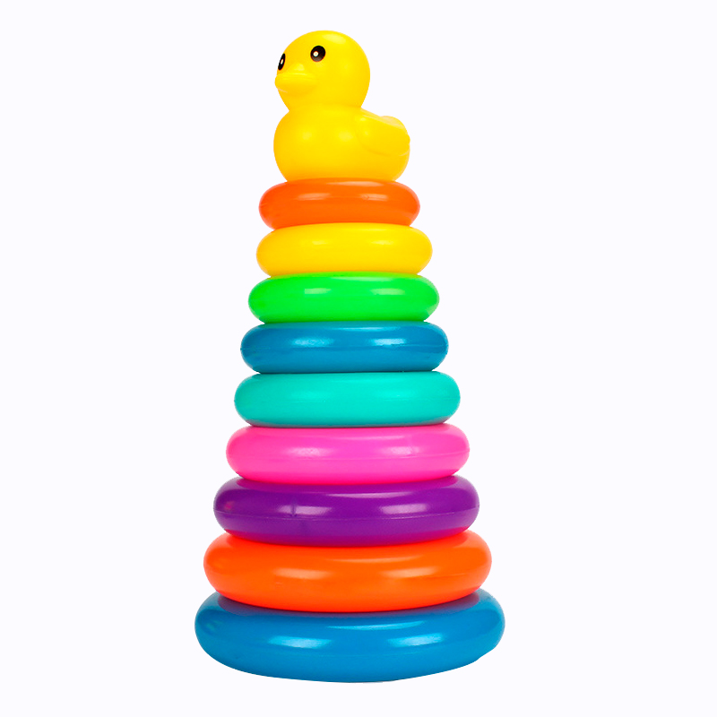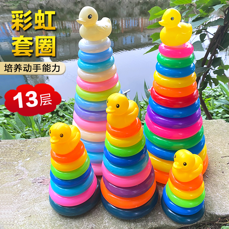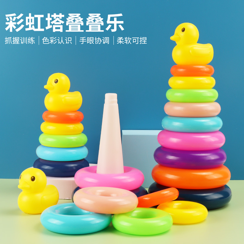 Yellow Duck Rainbow Tower Loop Baby Early Education Stacking Toys 0-3 Years Old 5 Children's Hands-on Stacking Music