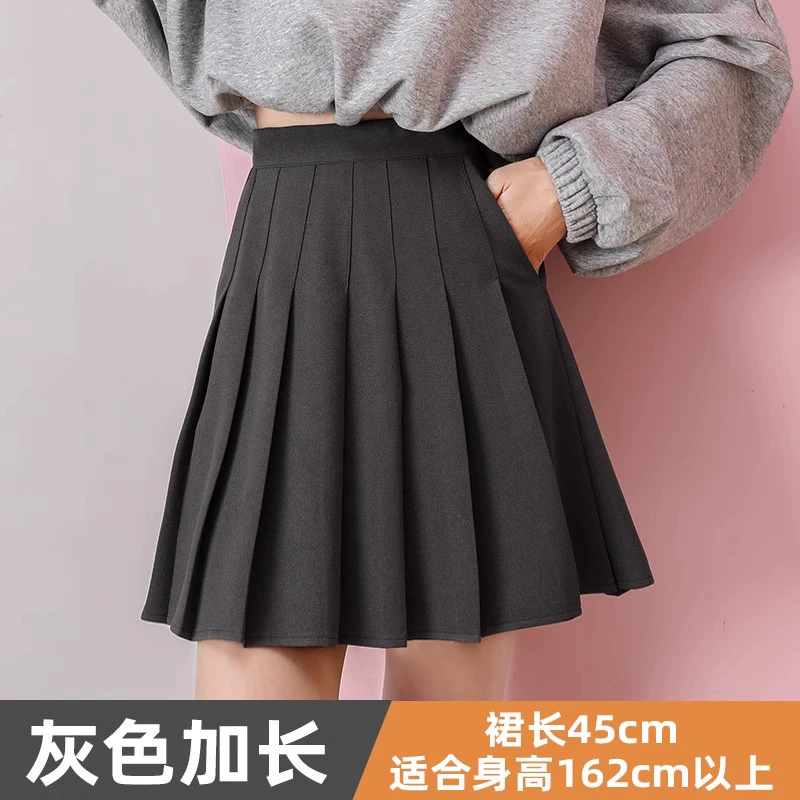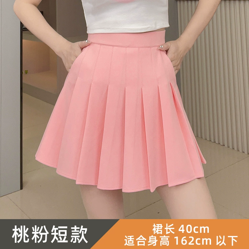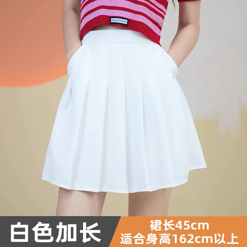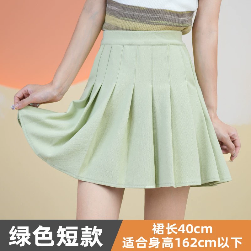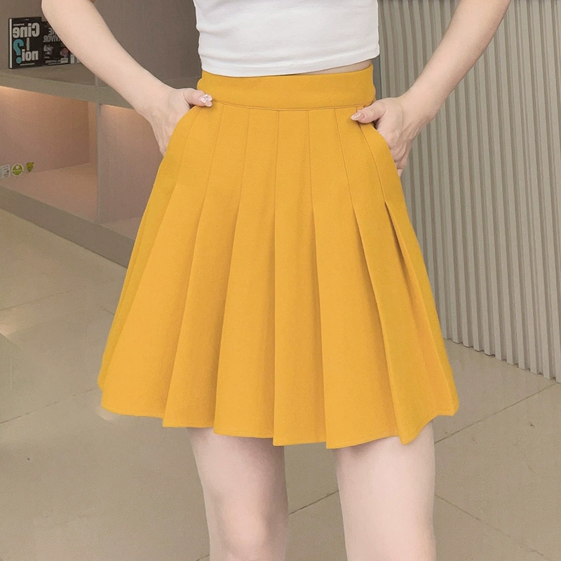 Yellow elastic high waist stretch pleated skirt with pocket