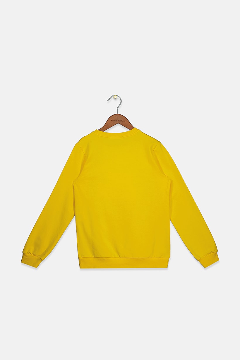 Care : Machine washable, Ideal For : Girls, Sleeve Length : Long Sleeve, Types of Hem : Straight hem, Types of Neckline & Collar : Crew neckline, Types of Sleeve : Longsleeve, Fabrics : 95% Cotton, 5% Elastane, Occasion : Casual, Pattern & Print : Graphic print, Types of Closures : Pullover, Color Family : Yellow,