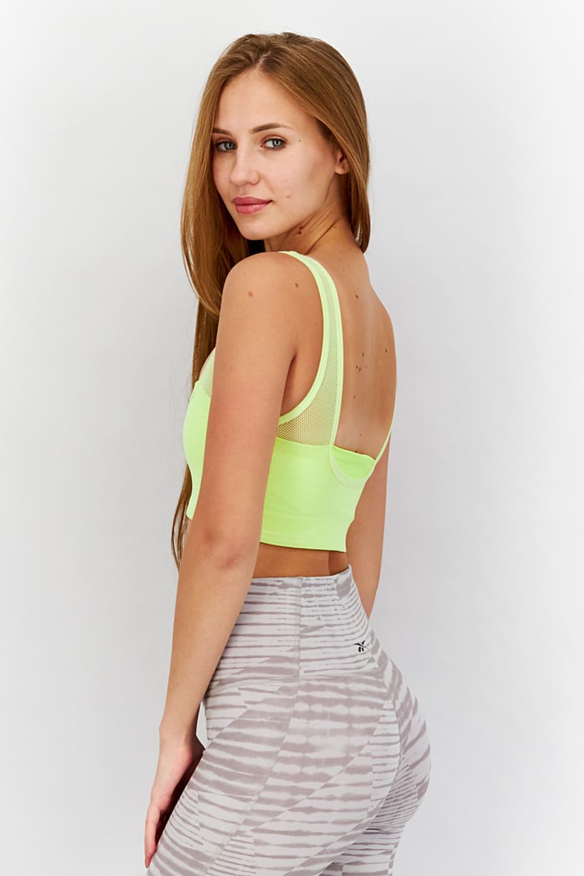 Women Sportswear Fit Sleeveless Mesh Sport Bra, Yellow Green