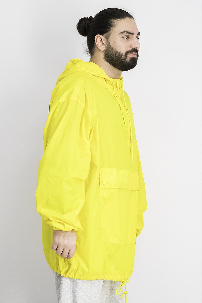 This product is easy to care for as it is machine washable. It has a sportswear fit and is available in international sizes. The jacket is lightweight and suitable for training. It is made of 100% Polyamide fabric and features a graphic print. This jacket is perfect for sportswear and comes in a yellow color.