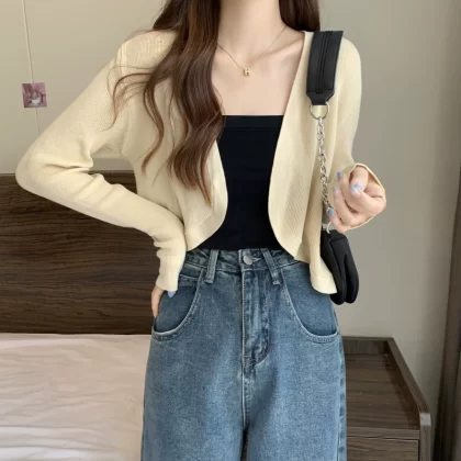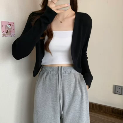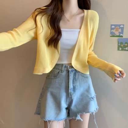 Yellow ice silk sunscreen cardigan suspender skirt small shawl