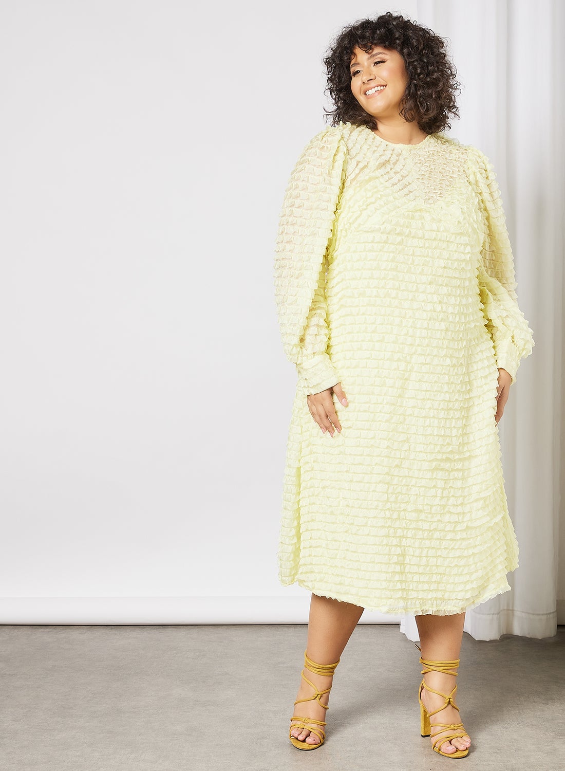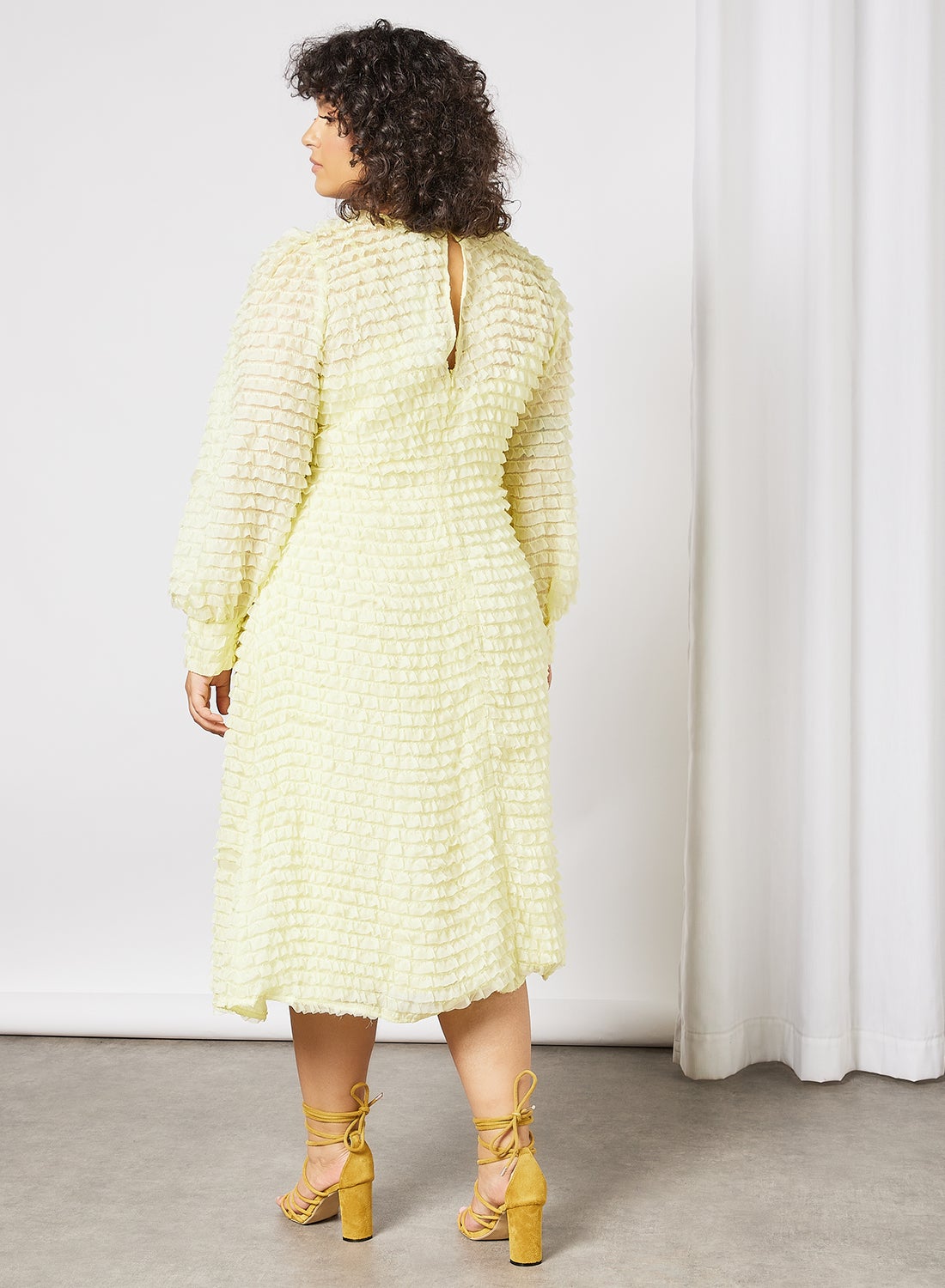 Yellow Midi Dress with Ruffles for Plus Size Women.