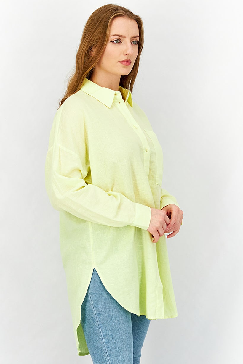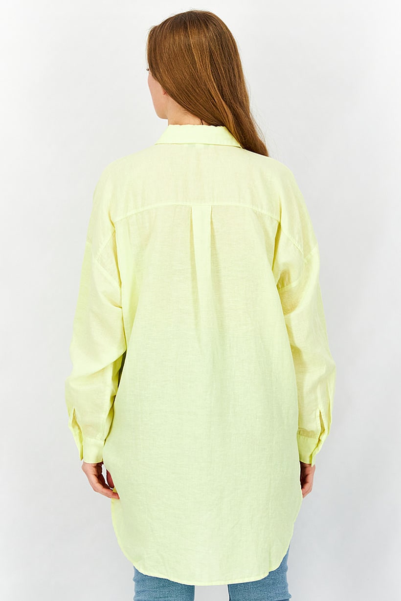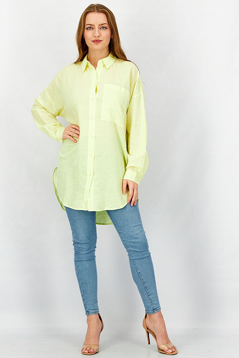 Yellow Oversized Blouse with Mid Collar, Long Sleeves and Chest Pocket for Women.
