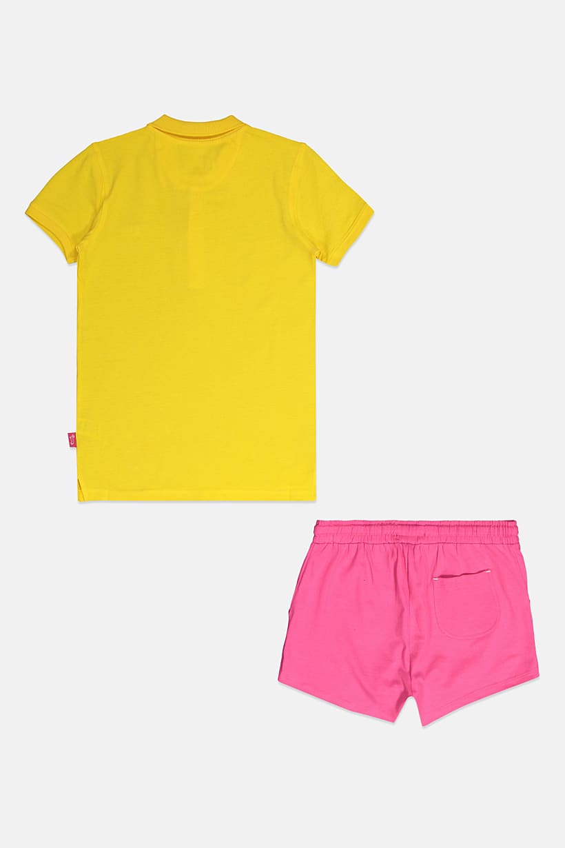 Yellow/Pink Polo Shirt and Shorts Set with Embroidered Logo for Girls.