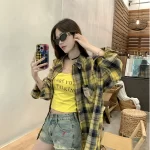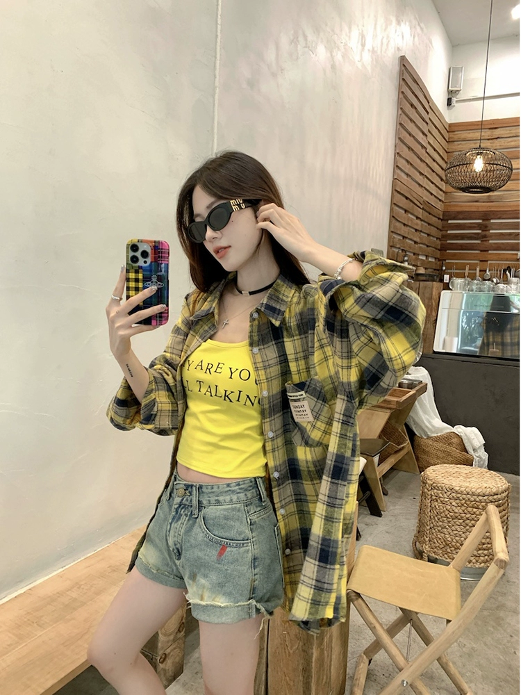 | nameOriginal | Yellow plaid vintage brushed loose long-sleeved shirt |