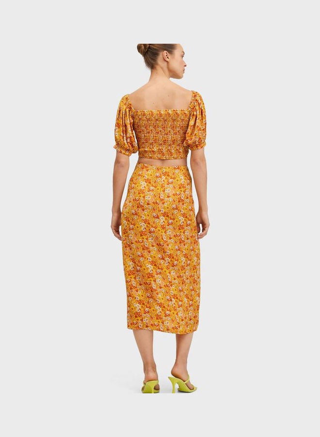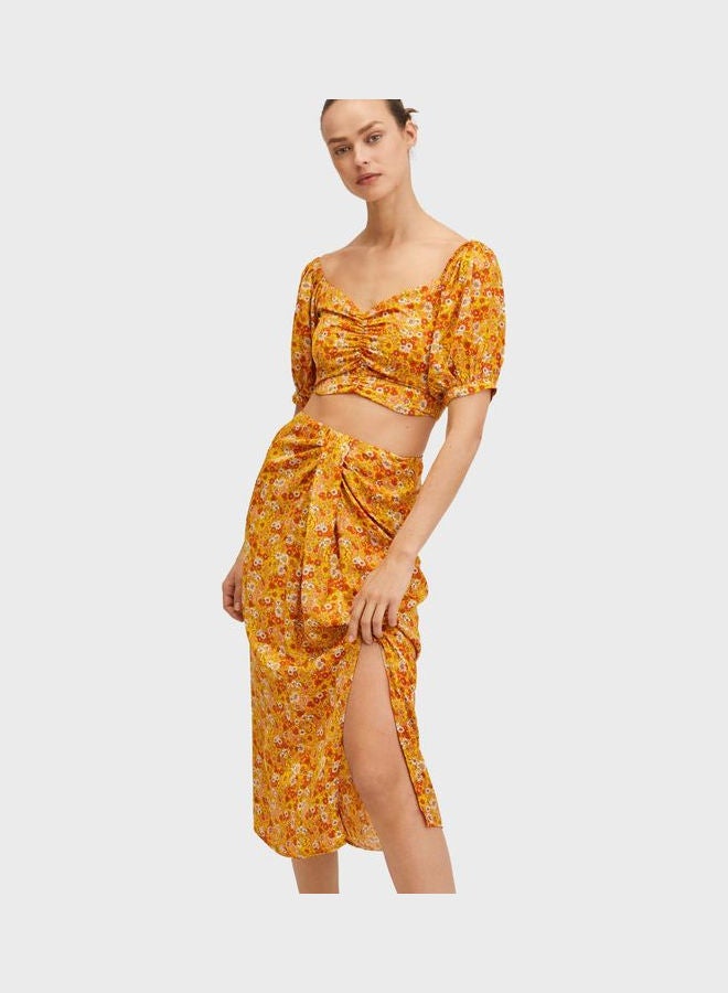 | nameOriginal | Women Printed Front Slit Skirts Yellow |