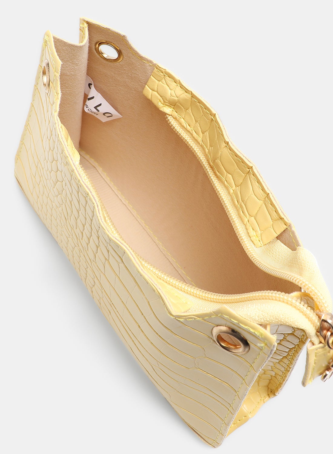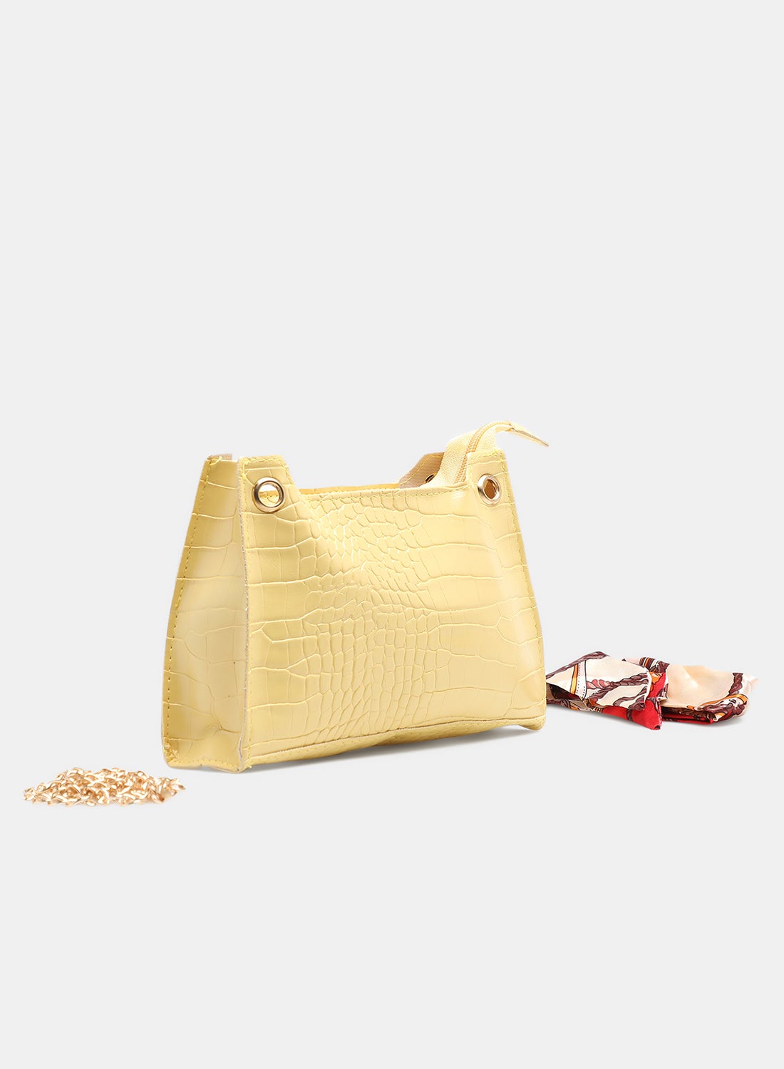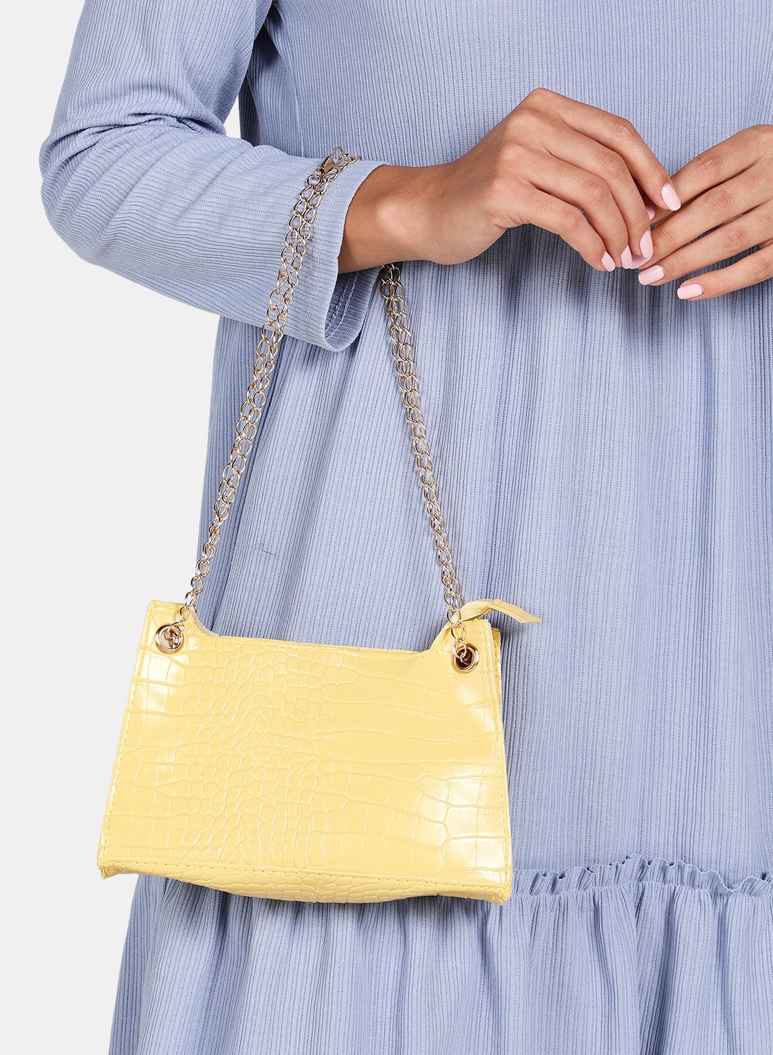 Chain strap Textured Fancy Womens PU satchel Bag Yellow
