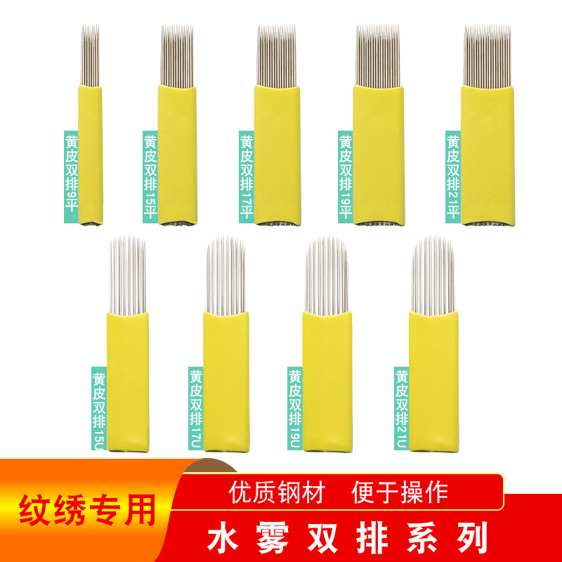 Yellow skin double-row water mist needle U-shaped practice needle piece fog eyebrow eyebrow embroidered eyebrow flat head double-row fog needle manual pen needle