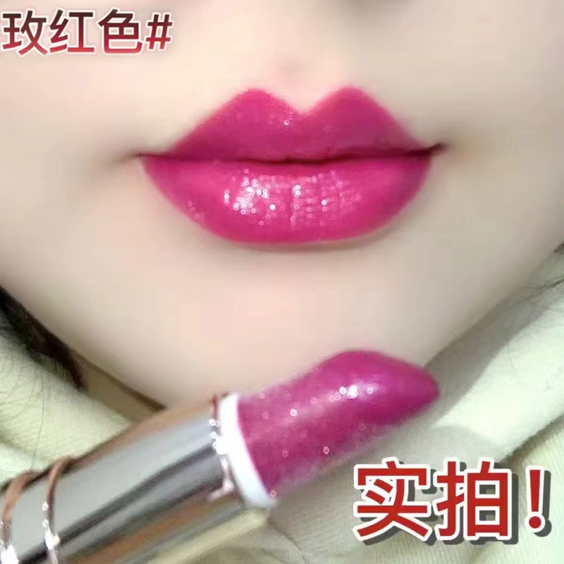 Yellow-skinned middle-aged mother’s lipstick rose red rose pink purple dragon fruit color genuine big-name pearlescent belt with sparkling crystals