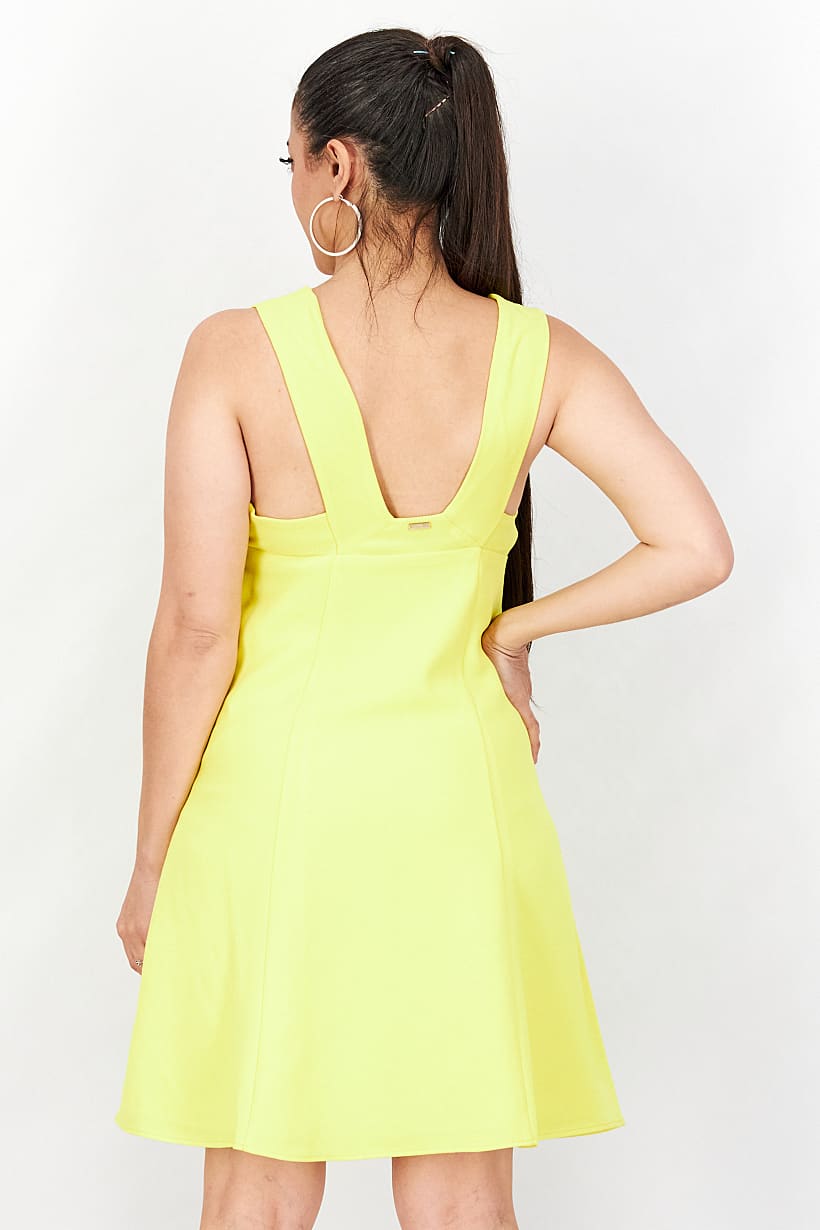 | descriptionOriginal | Care : Machine washable, Dress Style : Mini, Fit : Regular fit, Ideal For : Women, Size shown : US, Types of Hem : Straight hem, Types of Neckline & Collar : V-neckline, Types of Sleeve : Sleeveless, Disclaimer : Product color may slightly vary due to photographic lighting sources or your monitor settings., Fabrics : 100% Polyester, Types of Closures : Pullover, Color Family : Yellow, Pattern & Print : Plain/Solid, |