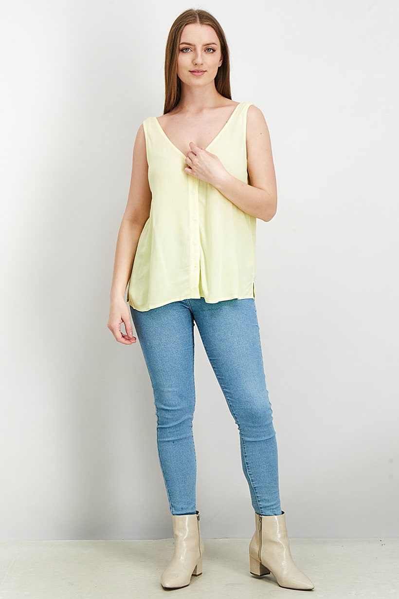 | nameOriginal | Women V-Neck Sleeveless Plain Top, Yellow |