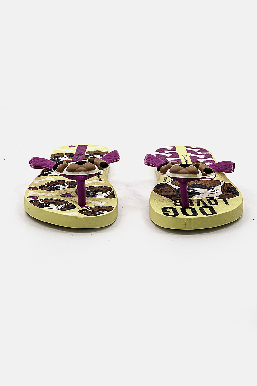 Girls Fashion, Girls Footwear, kids girl allover print slip on slippers yellow