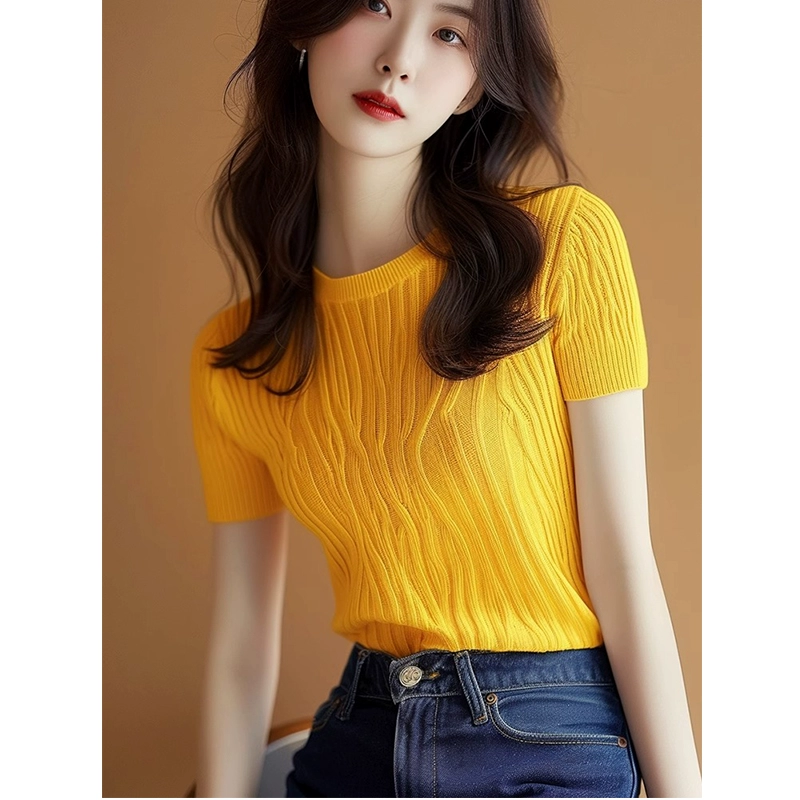 | nameOriginal | Yellow striped spring and summer unique and chic short-sleeved T-shirt |