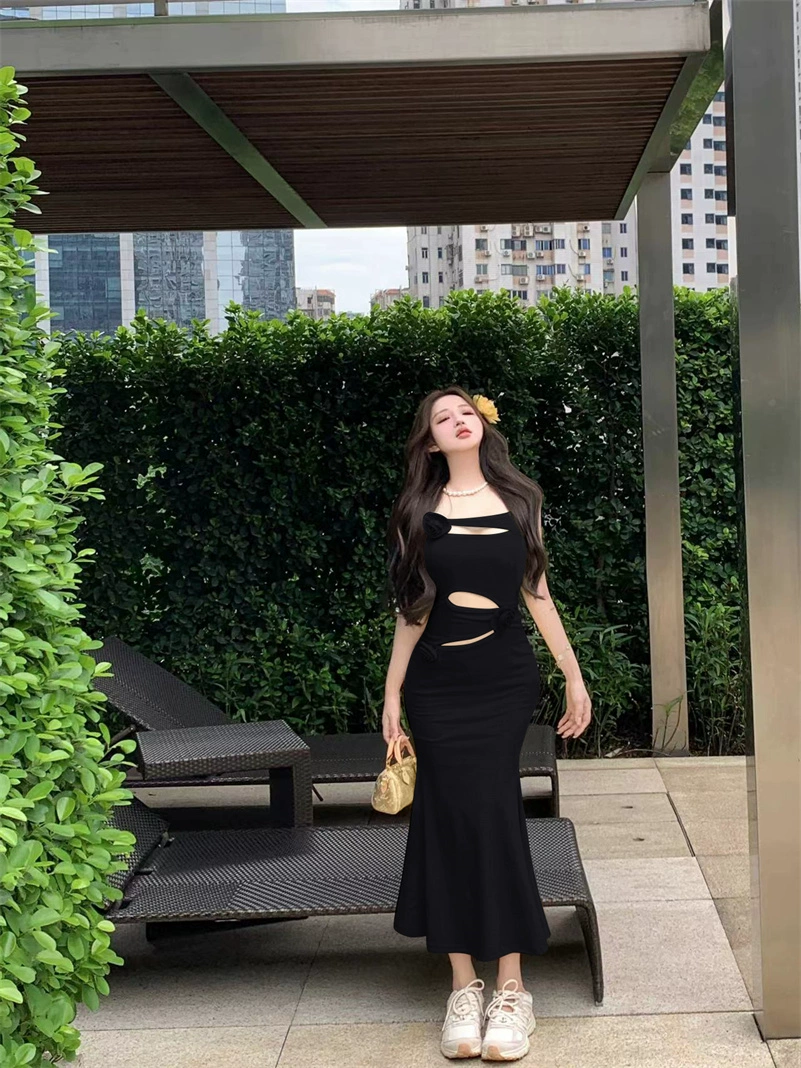 | nameOriginal | Yellow suspender dress summer slim fishtail flower |
