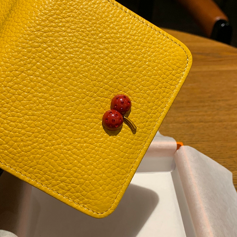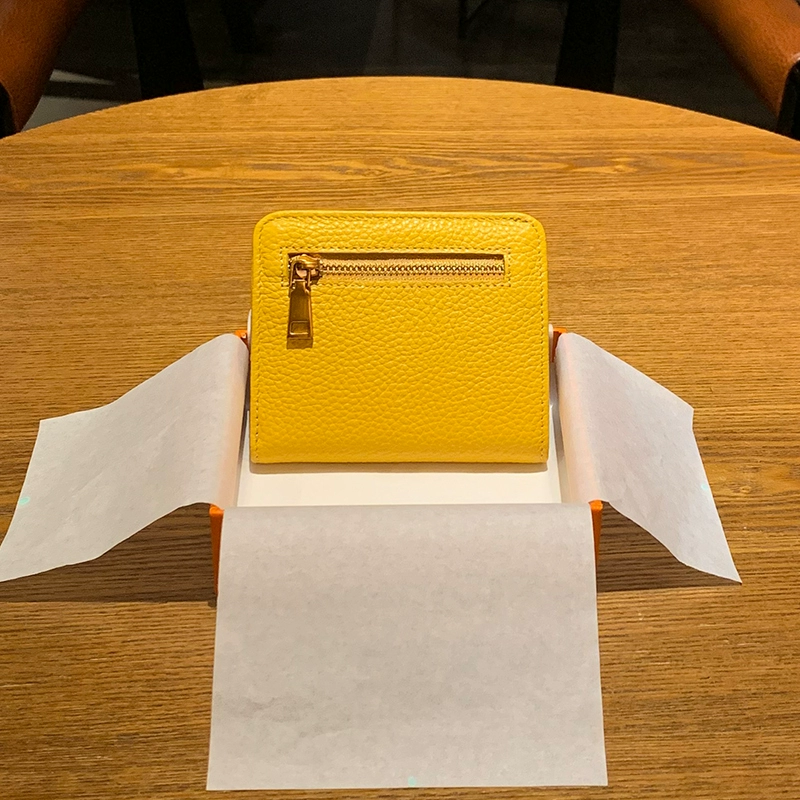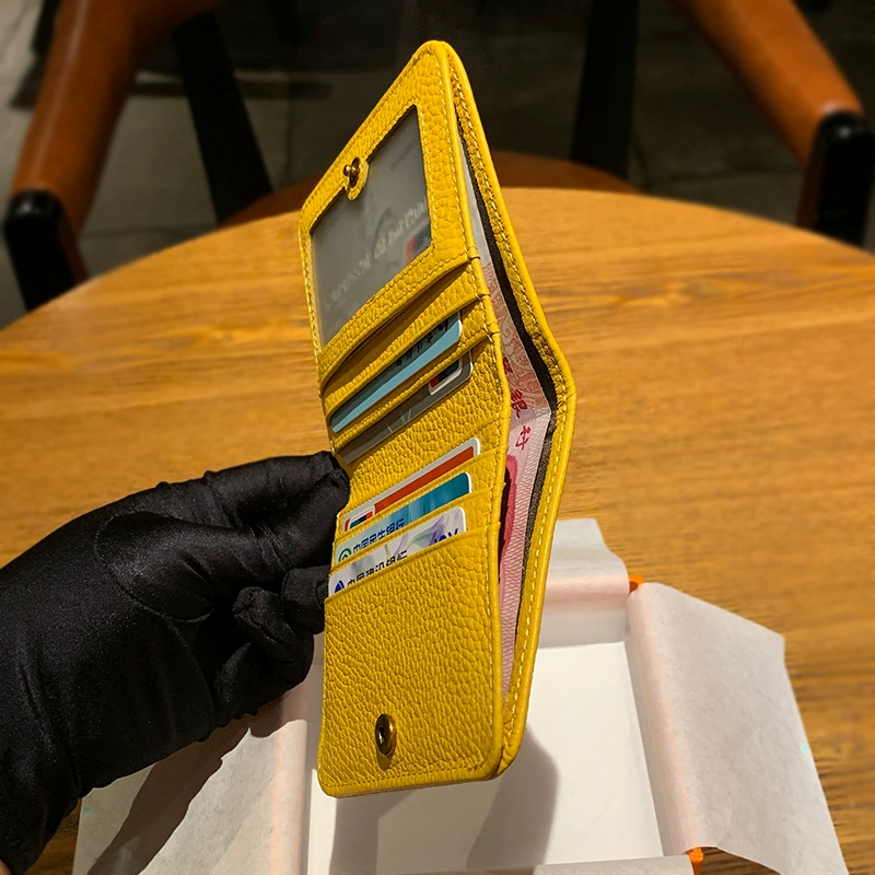 | nameOriginal | Yellow wallet attracts wealth, short genuine leather two-fold ultra-thin 2024 new wallet folding ins simple fashionable small girl |
