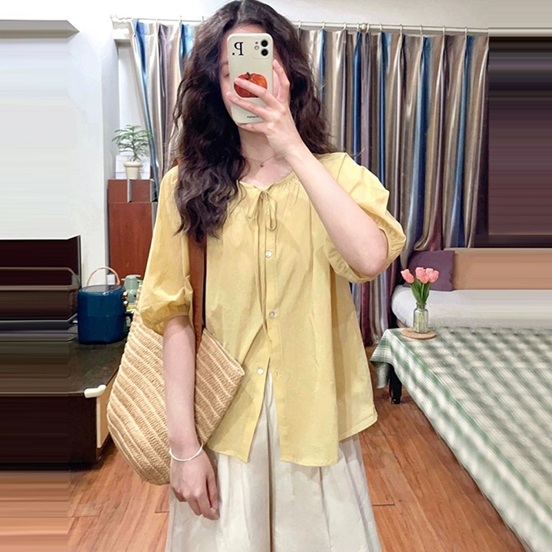 | nameOriginal | Yellow women's summer loose niche simple short-sleeved shirt |