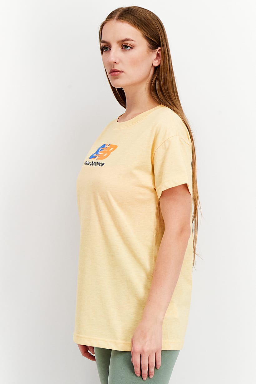 Women Relaxed Fit Short Sleeve Brand Logo T-Shirt, Yellow