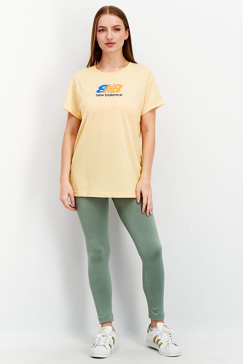 Women Clothing, Sportswear, women relaxed fit short sleeve brand logo t shirt yellow