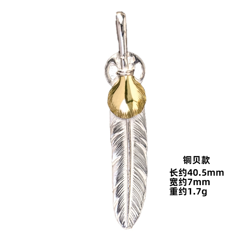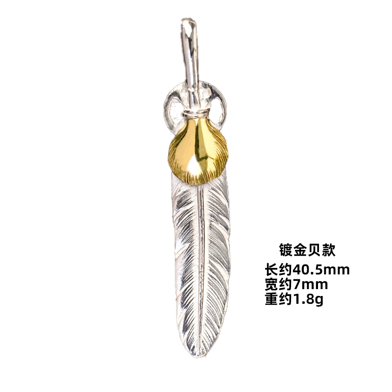 | nameOriginal | Yema Manor handmade goros Takahashi Feather Goro style 18K gold shell and silver shell M medium feather 925 pendant |