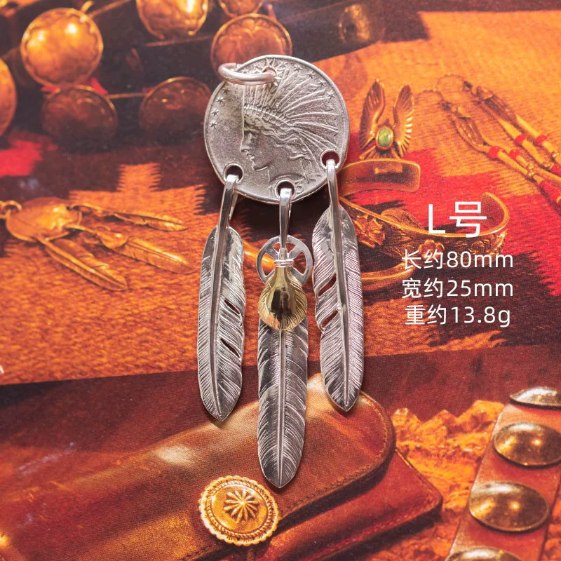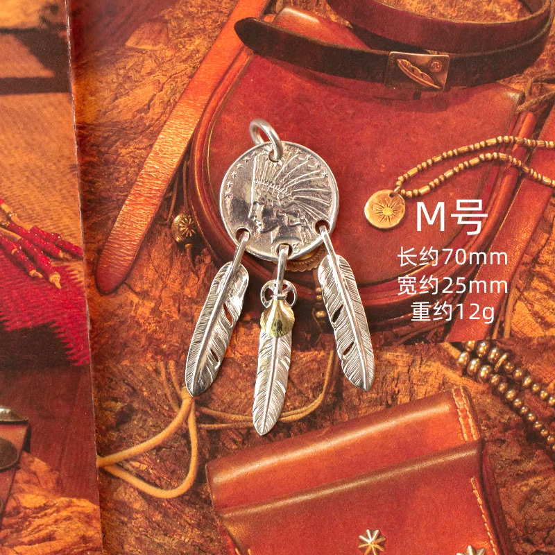 | nameOriginal | Yema Manor Takahashi Feather Goros goros dream catcher 925 silver gold shell star same style three hanging feather pendant |