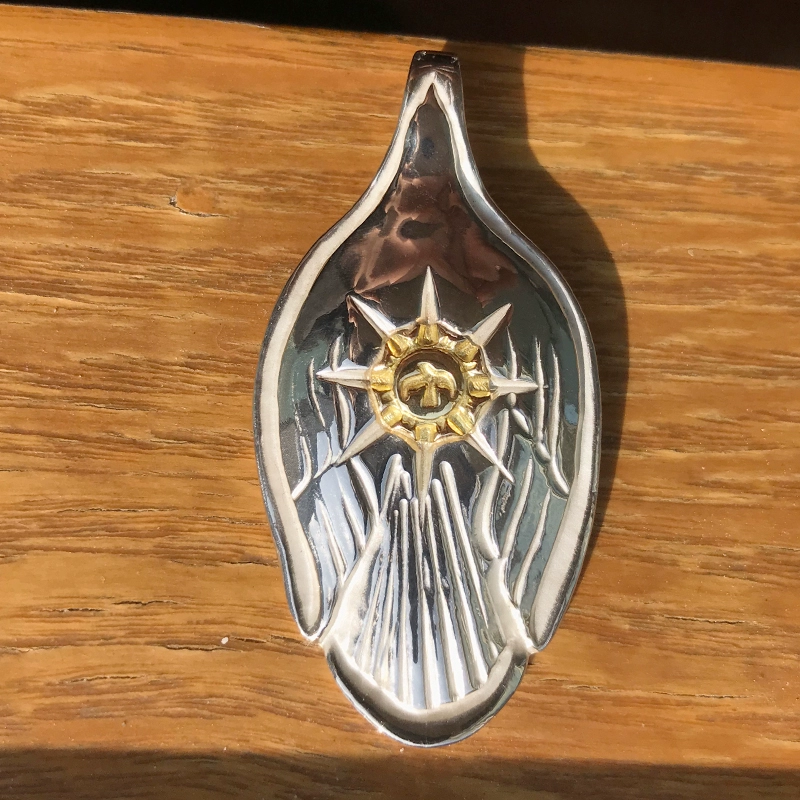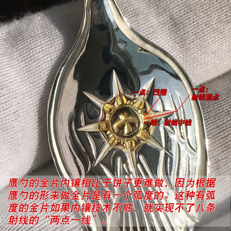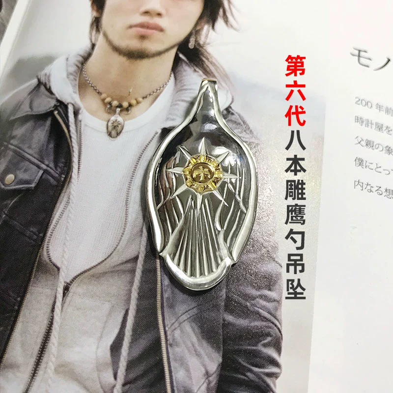 | nameOriginal | Yema Manor Takahashi Fegoro style goros sixth generation eight carvings with gold pieces inside and eagle spoon silver pendant |