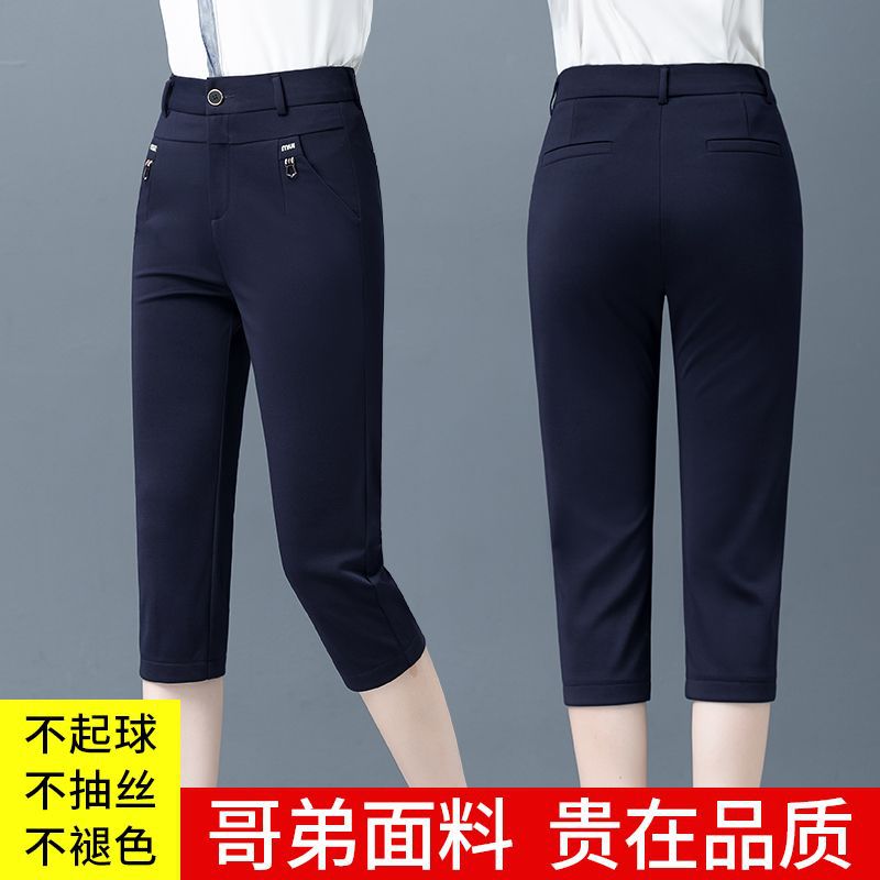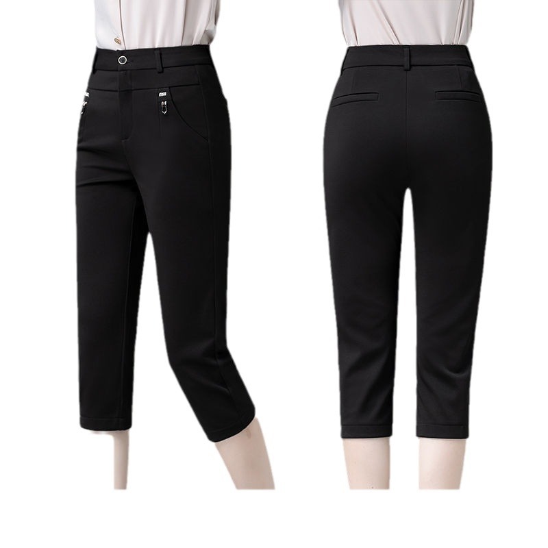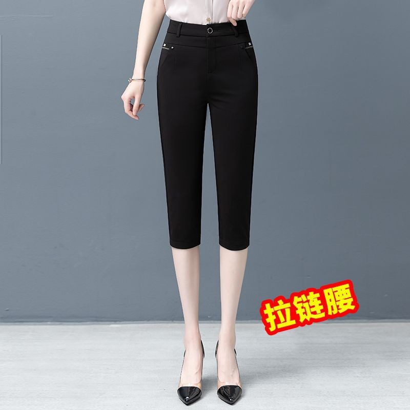 Yh Capri Pants Women's High Waist Slimming Leg Casual Pants 2024 New Summer Thin plus size Black Middle-aged Pants