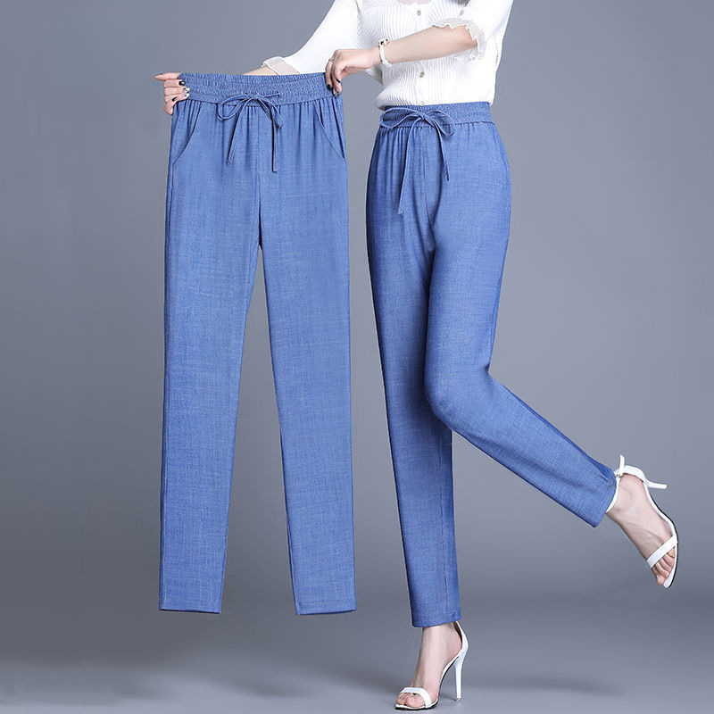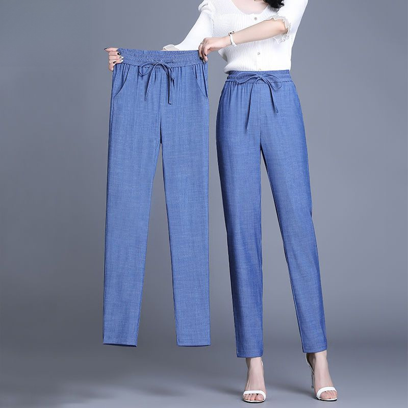 Yh Eight/Nine/Long Pants Summer Pants Loose Casual Sports Ice Silk Jeans Women’s High Waist Slimming Harlan