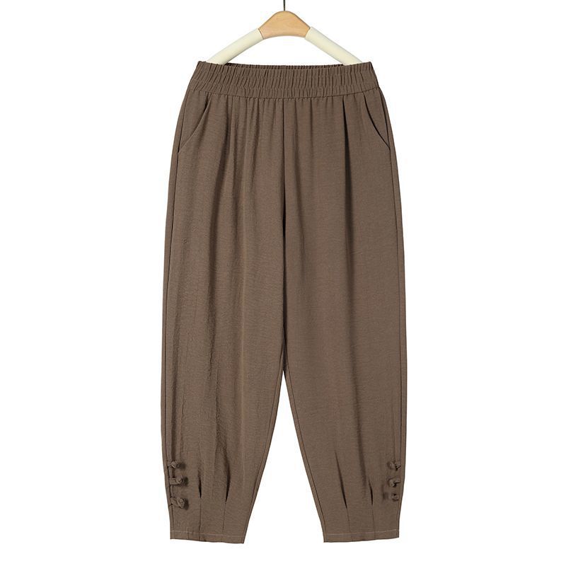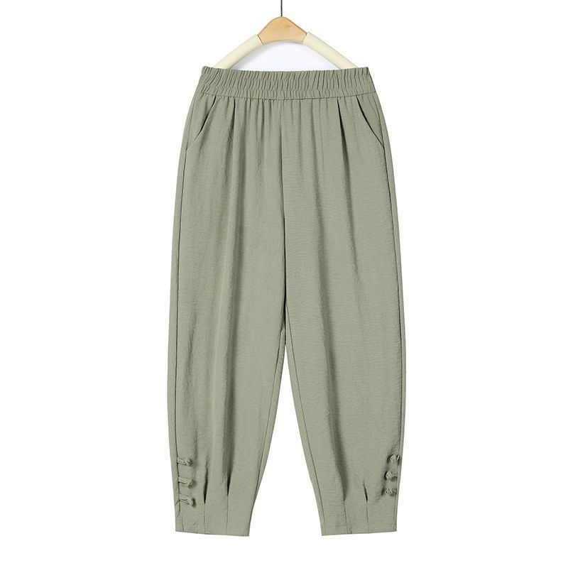 Yh Middle-aged Mother Pants Summer Thin Cropped Pants High Waist Middle-aged and Elderly Women's Pants Loose Breathable Grandma Harlan