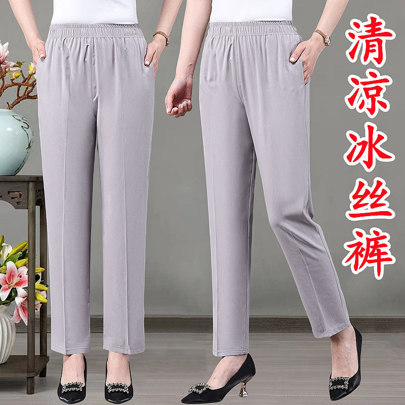 | nameOriginal | Yh Mom Pants Summer Thin Ice Silk Pants Middle-aged and Elderly Women's Pants Cropped Pants Straight Elastic High Waist Stretch Long |