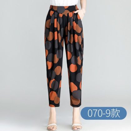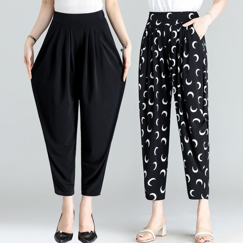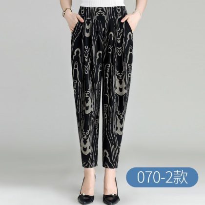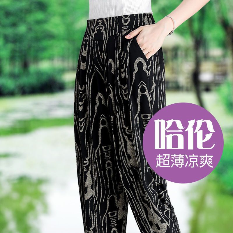 Yh Mother Pants Harlan Pants Women's Summer Thin Stretch Middle-aged and Elderly Women's Pants Flower Pants Radish Pants Elderly Pants Cropped
