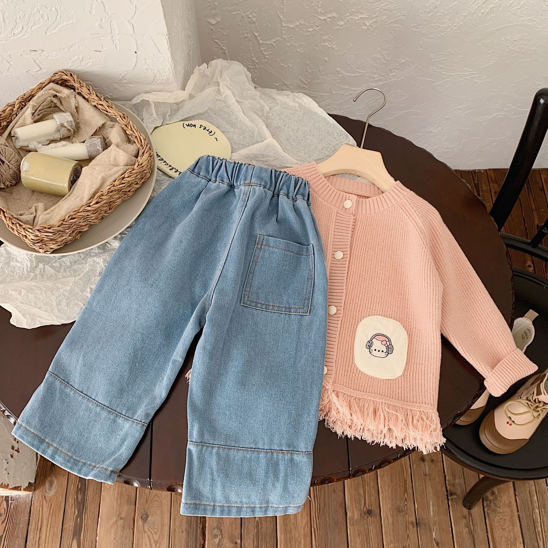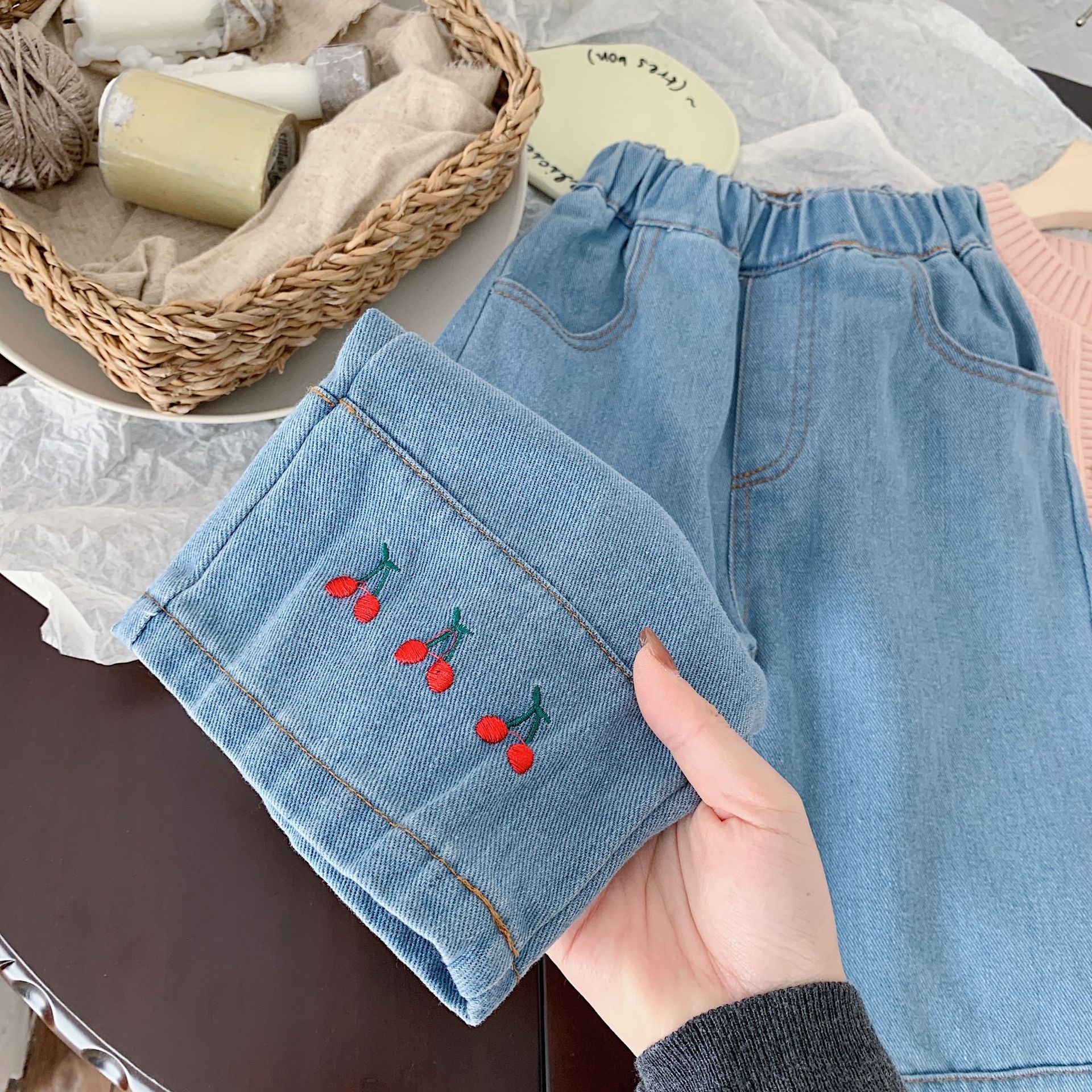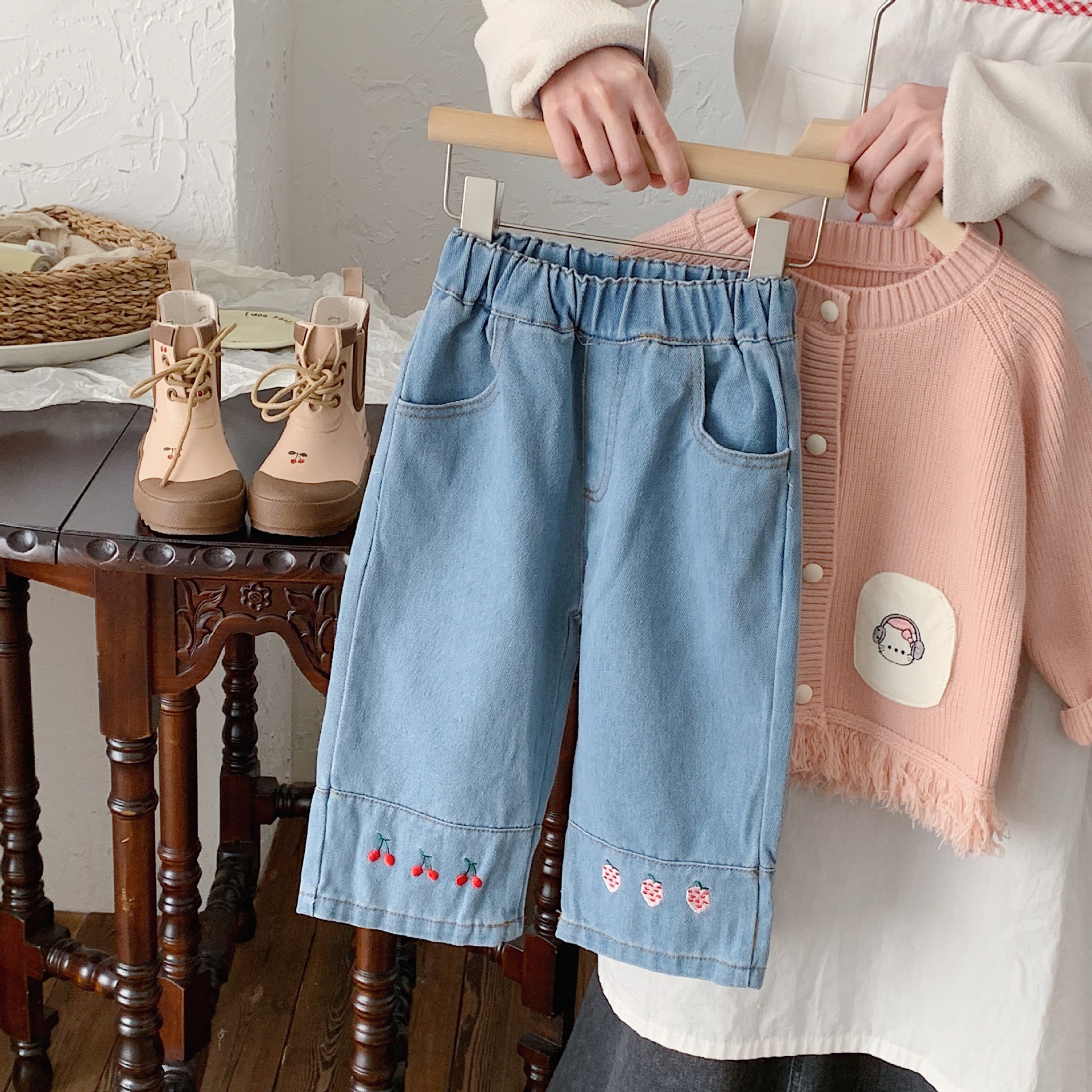 | nameOriginal | Yicheng children's clothing 2024 spring new Korean style girls' embroidered Denim straight pants wide leg pants loose cropped pants |