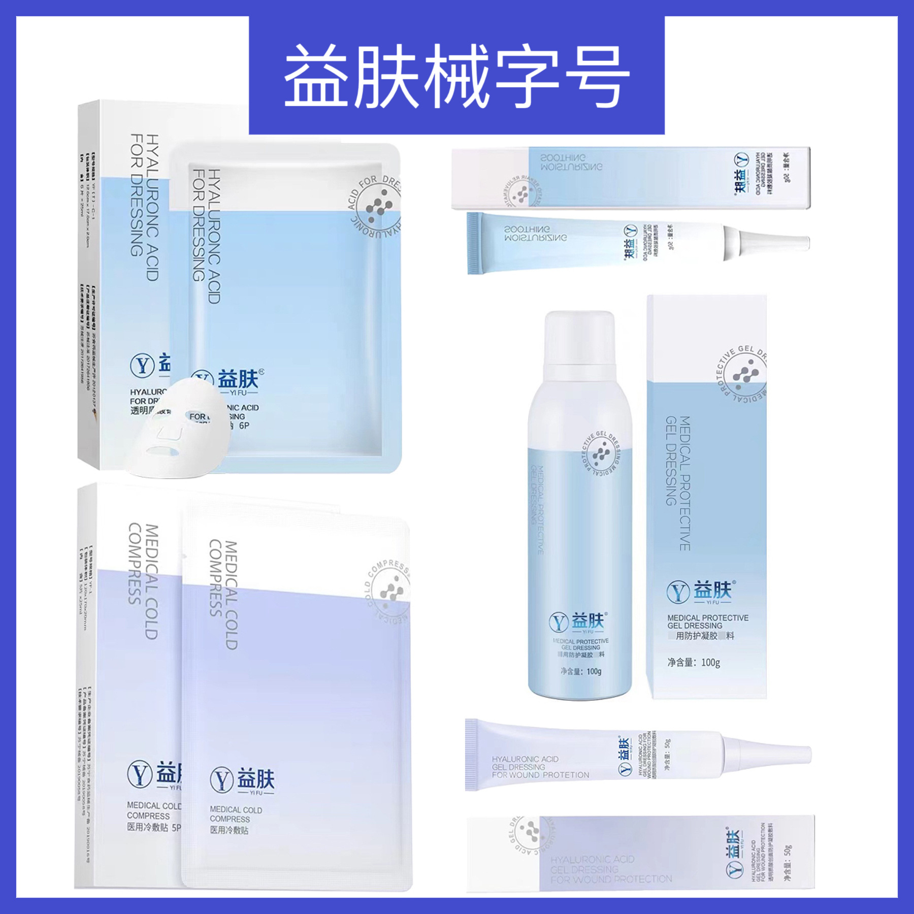 | nameOriginal | Yifu Blue Gel Purple Gel Blue Membrane Purple Membrane Hyaluronic Acid Medical Dressing After Acne Wound Repair |