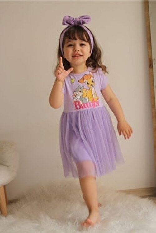 Top combed bambi printed Short sleeve Bottom tulle combed lined Girls’ dress