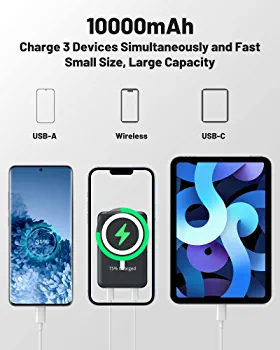 Introducing the Yiisonger Slim Wireless Power Bank, the ultimate solution for all your charging needs. This portable charger boasts a powerful 10000mAh battery capacity, ensuring that your devices stay charged throughout the day. With its magnetic design, it easily attaches to your phone, making it a convenient and hassle-free charging experience.