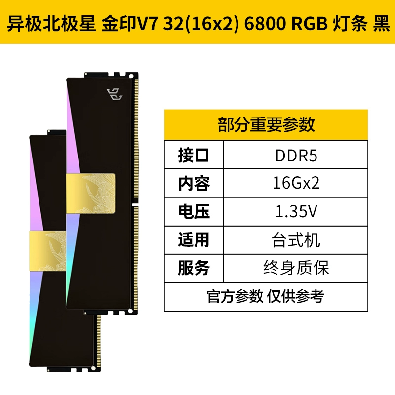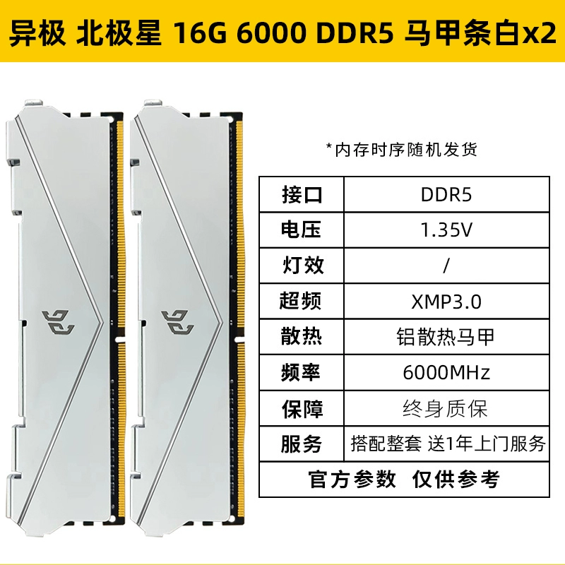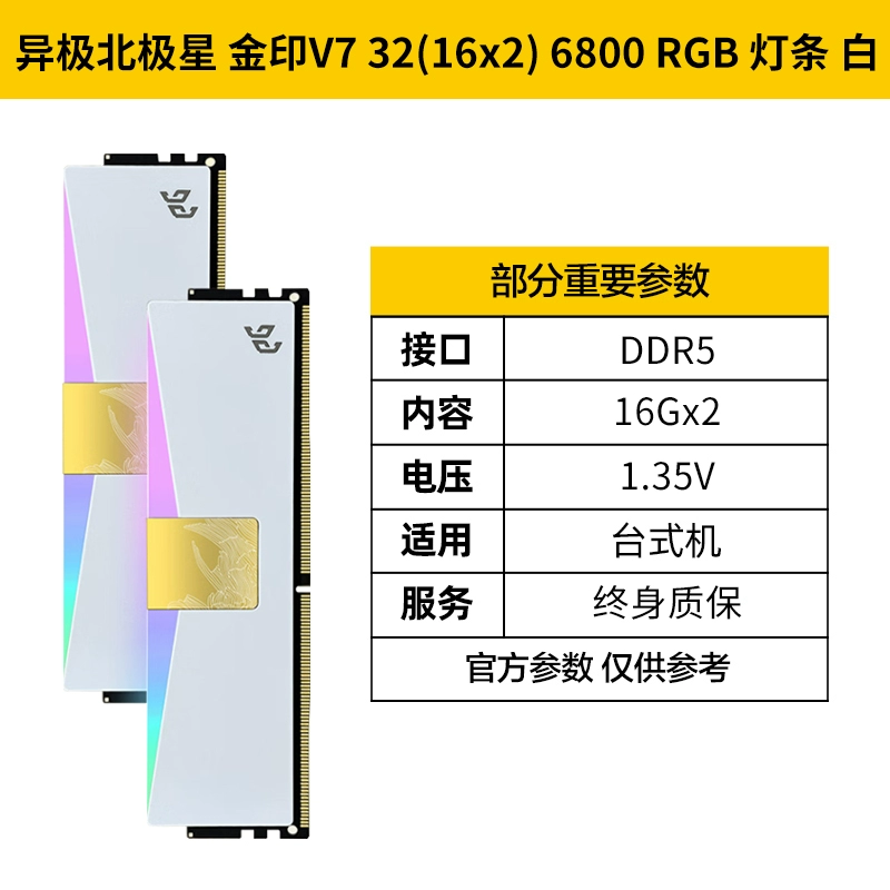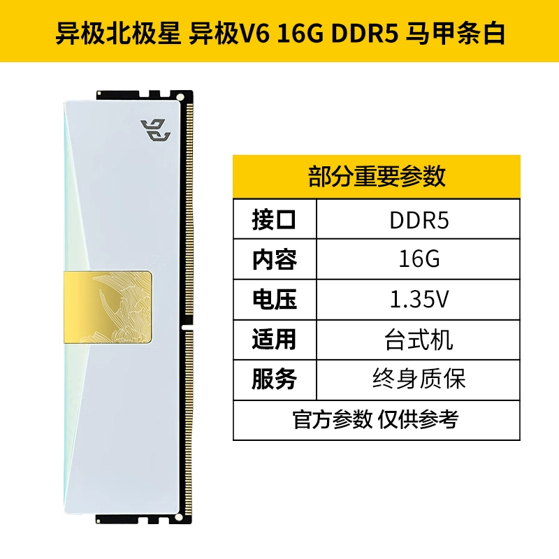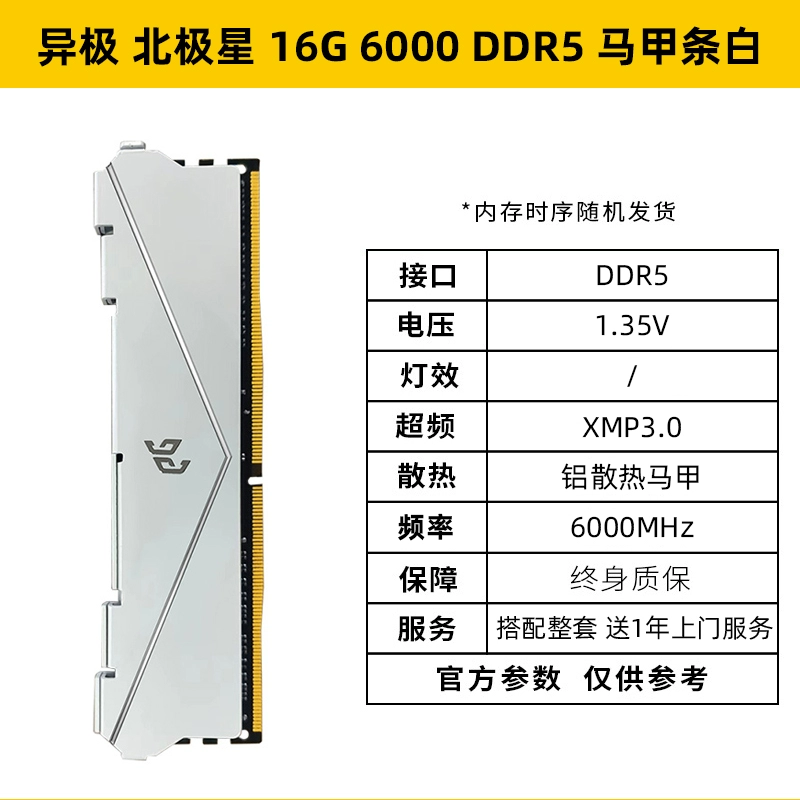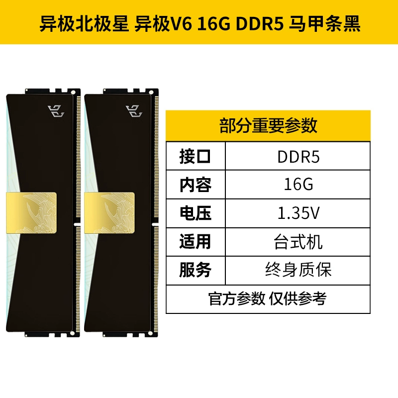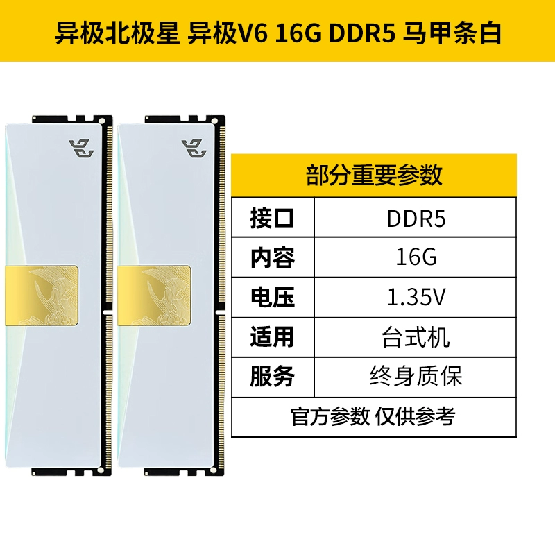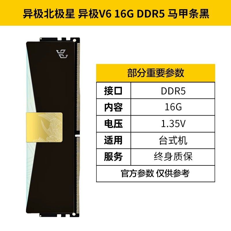 | nameOriginal | Yiji EG Polaris 16G DDR5 6000/6800MHz 32GB (16Gx2) Gold Seal Gaming Memory Stick |